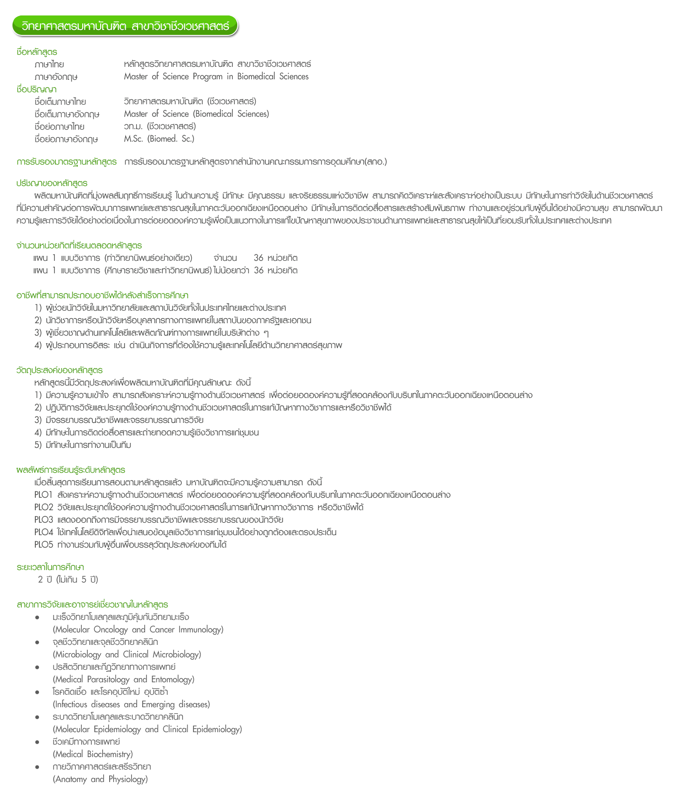 วิทยาศาสตรมหาบัณฑิต(ชีวเวชศาสตร์)