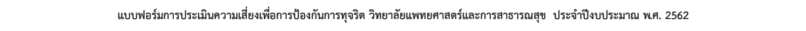 | ประเด็นความเสี่ยง | การควบคุมที่มีอยู่ | การประเมินความเสี่ยง | แนวทางการจัดการ/มาตรการ ป้องกันการทุจริต |
