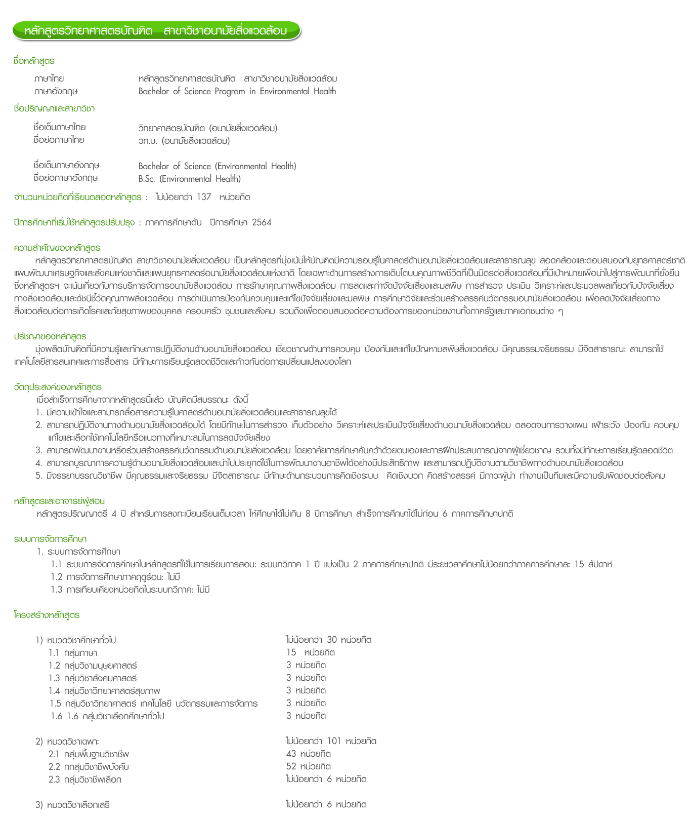 • วิทยาศาสตรบัณฑิต(อนามัยสิ่งแวดล้อม)