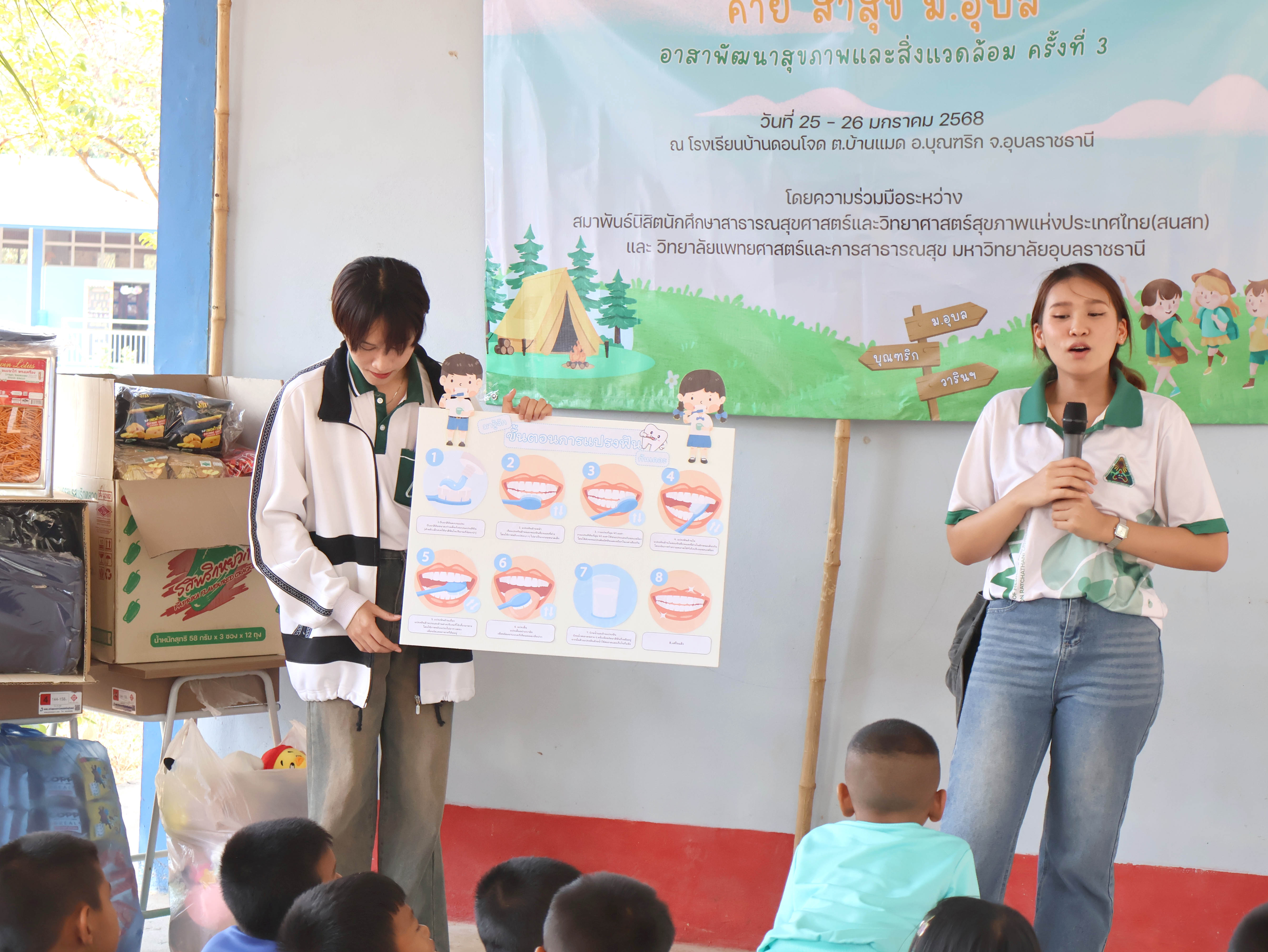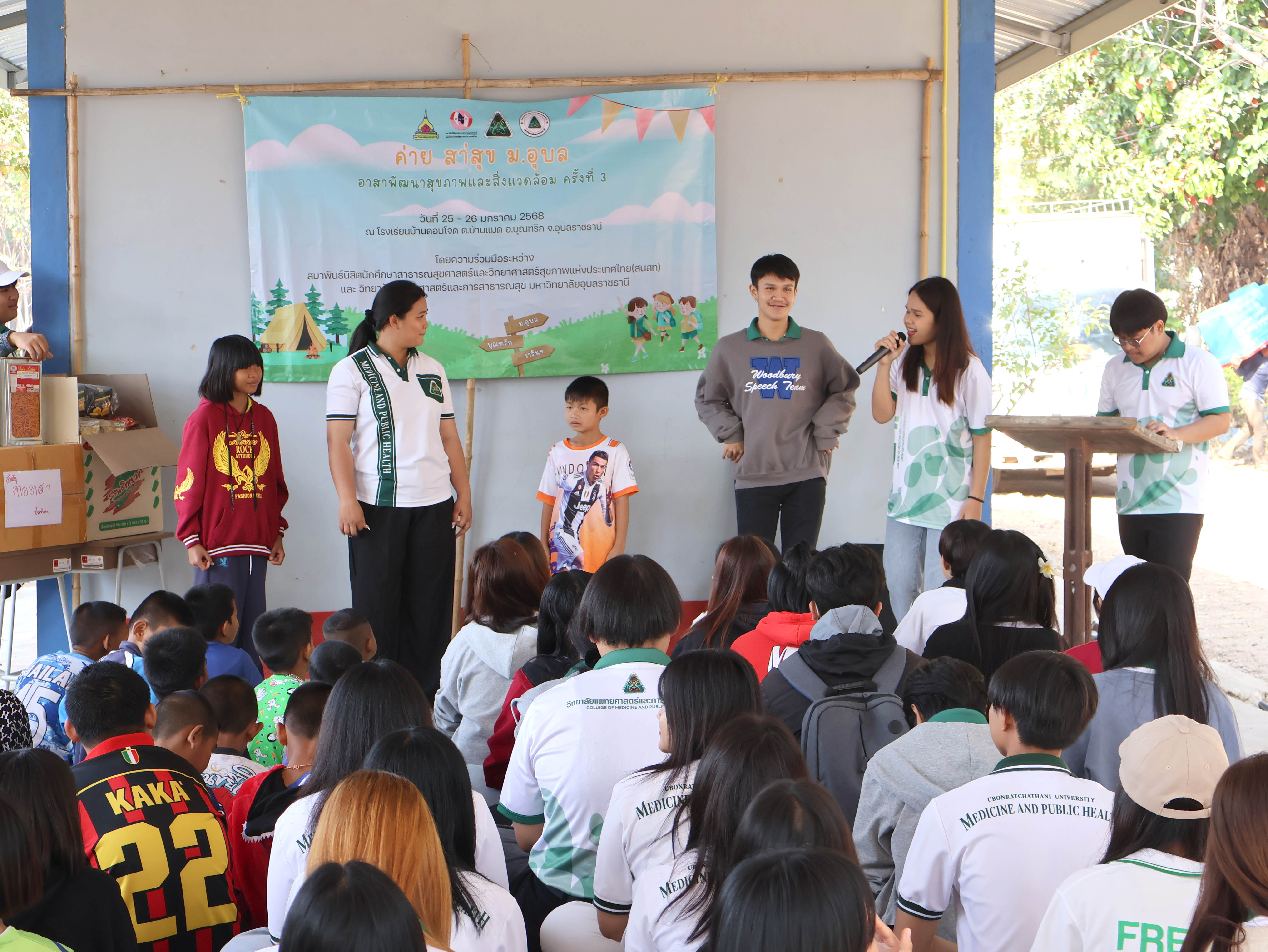 | โมสรนักศึกษาวิทยาลัยแพทยาสตร์และการสาธารณสุข ร่วมกันสมาพันธ์นิสิต นักศึกษาสาธารณสุขศาสตร์และวิทยาศาสตร์สุขภาพแห่งประเทศไทย (สนสท.) จัดกิจกรรมเพื่อสังคม (Corporate Social Responsibility: CSR) ในรูปแบบกิจกรรมค่าย สาสุข ม.อุบล อาสา พัฒนาสุขภาพและสิ่งแวดล้อม ครั้งที่ 3 ระหว่างวันที่ 25-26 มกราคม 2567 ณ โรงเรียนบ้านดอนโจด ตำบลแมด อำเภอบุณฑริก จังหวัดอุบลราชธานี โดยมีวัตถุประสงค์ให้นักศึกษาสามารถนำความรู้ไปบูรณาการใช้กับกิจกรรมเพื่อพัฒนาทักษะในการเรียนรู้และการทำประโยชน์ด้านสุขภาพและสิ่งแวดล้อมต่อสังคม |