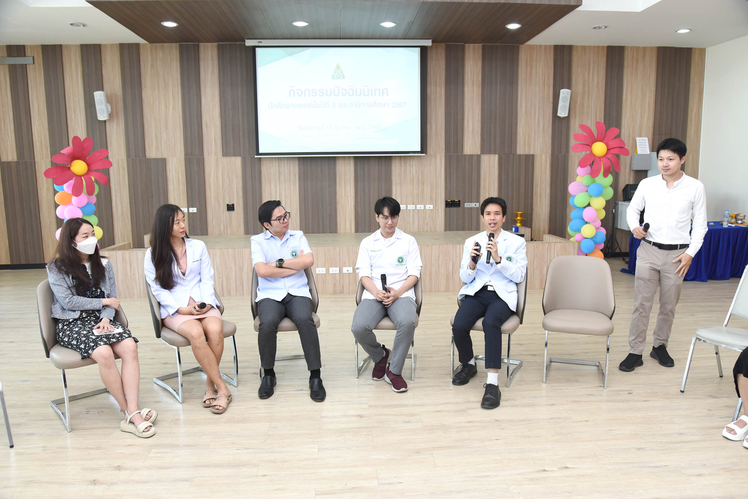 | ภาพกิจกรรมปัจฉิมนิเทศ นักศึกษาแพทย์ ชั้นปีที่ 6 ประจำปีการศึกษา 2567 โดย นพ.ประวิ อ่ำพันธ์ และ ศ.นพ.สงวนสิน รัตนเลิศ คณบดี วิทยาลัยแพทยศาสตร์สาธารณสุข มหาวิทยาลัยอุบลราชธานี เป็นประธานในงาน