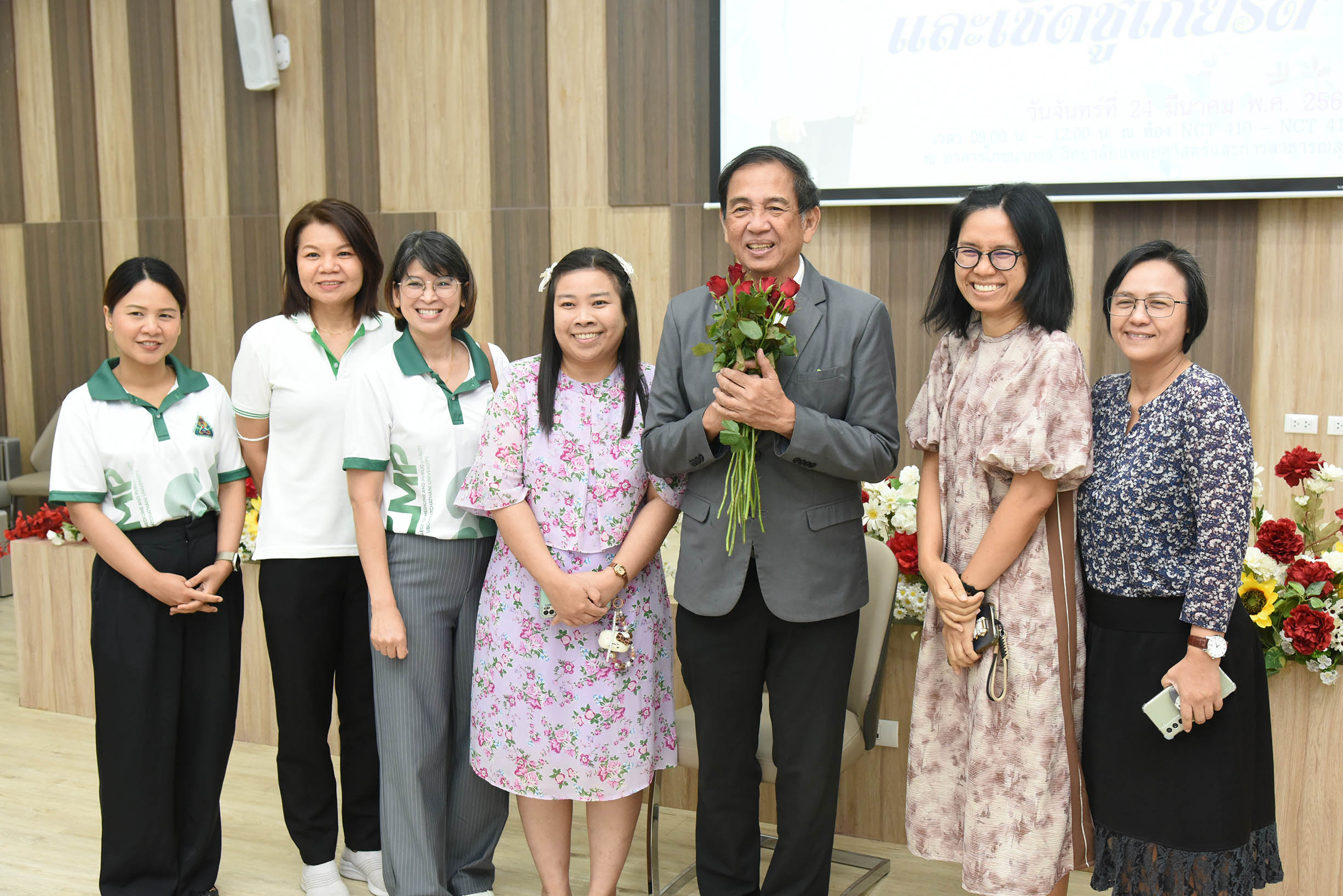 | ภาพกิจกรรมถ่ายทอดผลการดำเนินงานของผู้บริหาร ครั้งที่ 1 "งานมุทิตาจิตและงานเชิดชูเกียรติ" นพ.ประวิ อ่ำพันธ์ุ คณบดีวิทยาลัยแพทยศาสตร์สาธารณสุข มหาวิทยาลัยอุบลราชธานี