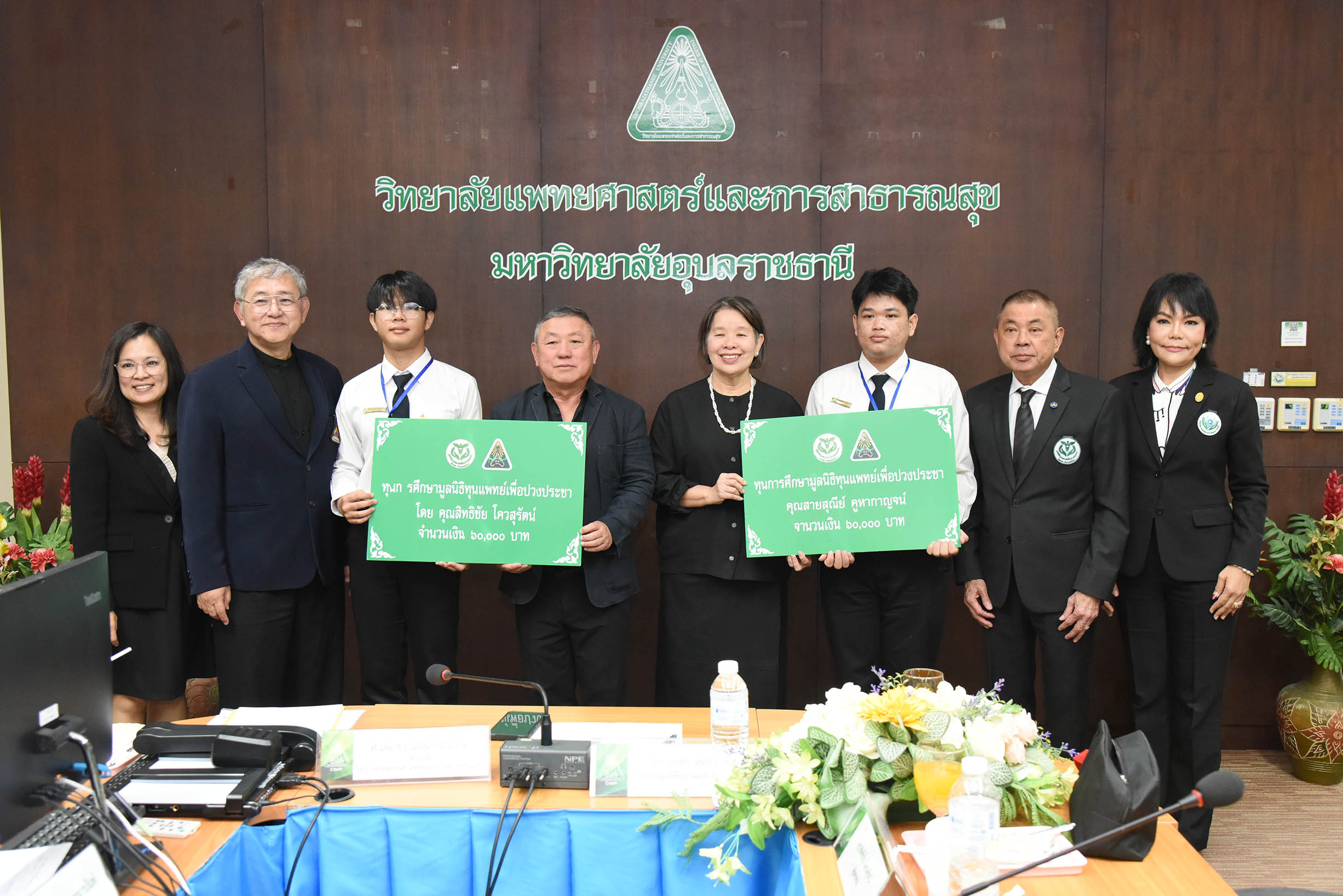 | ภาพกิจกรรมพิธีมอบทุนการศึกษานักศึกษาแพทย์ มูลนิธิทุนแพทย์เพื่อปวงประชา ประจำปี 2568 วันที่ 26 พฤศจิกายน พ.ศ.2568 โดย ศ.นพ.สงวนสิน รัตนเลิศ คณบดีวิทยาลัยแพทยศาสตร์และการสาธารณสุข ให้การต้อนรับคณะมูลนิธิแพทย์เพื่อปวงประชา และร่วมเป็นสักขีพยานในการมอบทุนการศึกษา นักศึกษาแพทย์ จำนวน 15 ทุนการศึกษา ณ ห้องประชุม CMP 401 วิทยาลัยแพทยศาสตร์และการสาธารณสุข มหาวิทยาลัยอุบลราชธานี สามารถดาวน์โหลดภาพทั้งหมดได้ที่