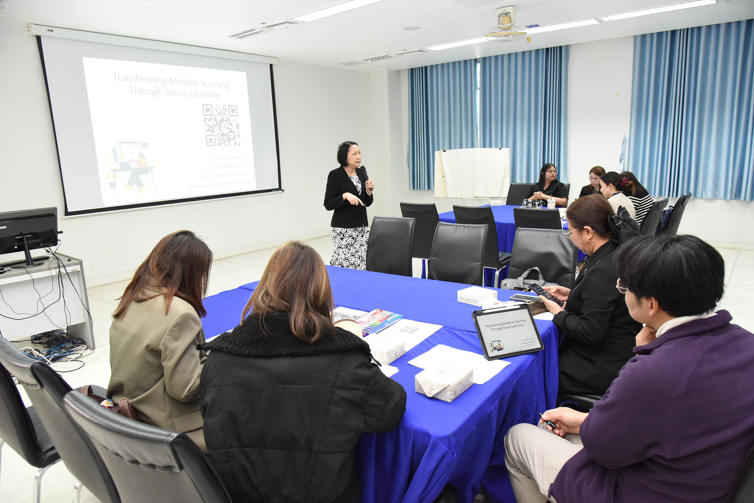 | วิทยาลัยแพทยศาสตร์และการสาธารณสุข จัดการอบรมแพทยศาสตรศึกษา เรื่อง Transforming Medical Teaching Through Active Learning วิทยากรโดย ผศ.พญ.สุธิดา สัมฤทธิ์ ผู้อำนวยการโรงเรียนแพทย์รามาธิบดี สถาบันการแพทย์จักรีนฤบดินทร์ คณะแพทยศาสตร์โรงพยาบาลรามาธิบดี มหาวิทยาลัยมหิดล โดยมีอาจารย์แพทย์จากศูนย์แพทยศาสตรศึกษาชั้นคลินิก โรงพยาบาลสรรพสิทธ์ โรงพยาบาลศรีสะเกษ โรงพยาบาลมุกดาหาร เข้าร่วมการอบรม วันศุกร์ที่ 9 มกราคม พ.ศ. 2569 เวลา 9.00 - 16.00 น. ณ ห้องประชุม cmp 122 วิทยาลัยแพทยศาสตร์และการสาธารณสุข มหาวิทยาลัยอุบลราชธานี สามารถดาวน์โหลดภาพทั้งหมดได้ที่