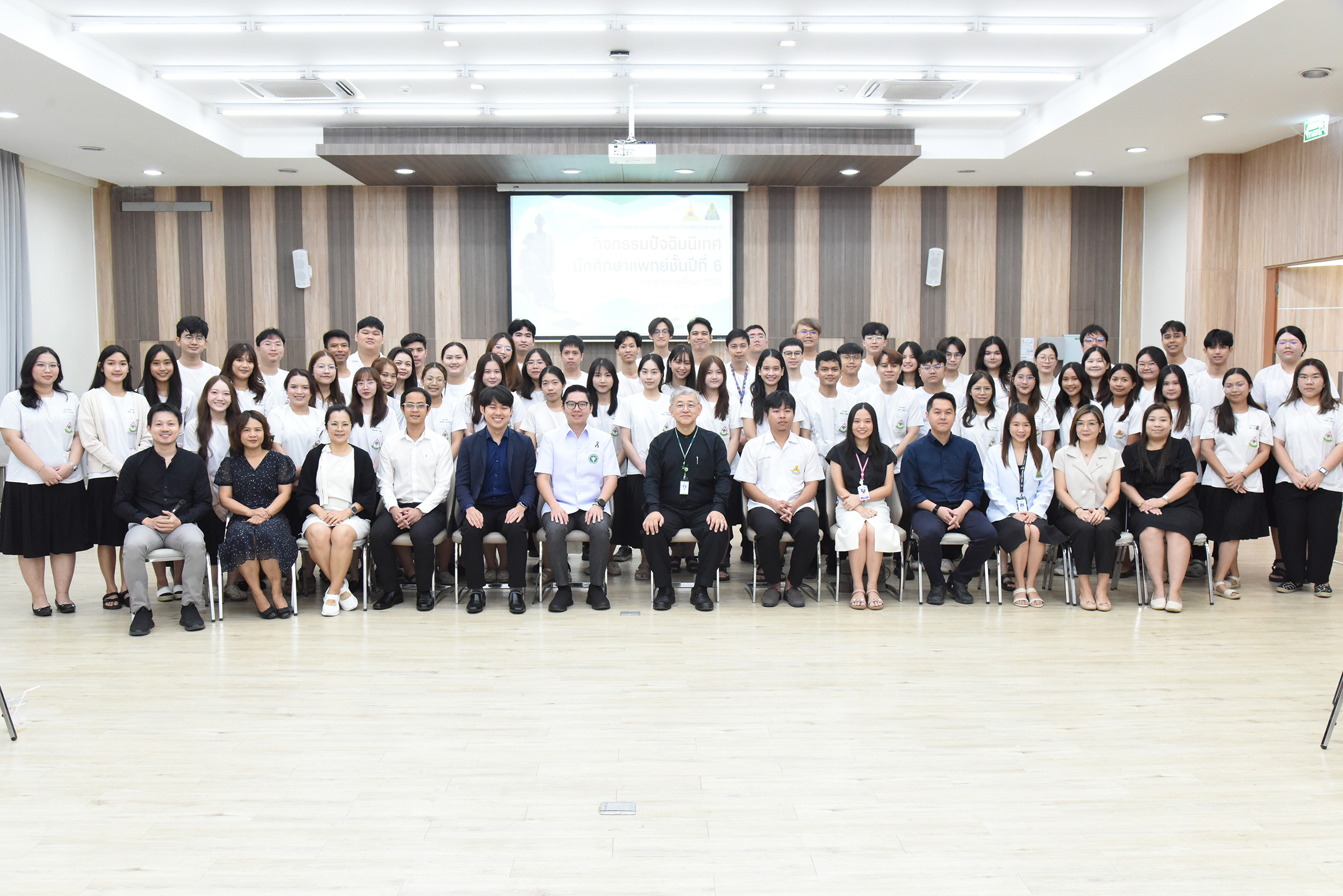| ภาพกิจกรรมปัจฉิมนิเทศนักศึกษาแพทย์ชั้นปีที่ 6 ประจำปีการศึกษา 2568 โดย ศ.นพ.สงวนสิน รัตนเลิศ คณบดีวิทยาลัยแพทยศาสตร์และการสาธารณสุข เป็นประธานเปิดงานและกล่าวให้โอวาท และศิษย์เก่าได้มาถ่ายทอดประสบการณ์ ก้าวแรกสู่วิชาชีพ ชีวิตการทำงานและการเงิน ให้กับนักศึกษาแพทย์ชั้นปีที่ 6 จากศูนย์แพทยศาสตรศึกษาชั้นคลินิกโรงพยาบาลสรรพสิทธิประสงค์และศูนย์แพทยศาสตรศึกษาชั้นคลินิกโรงพยาบาลศรีสะเกษ วันพุธที่ 17 มีนาคม พ.ศ.2569 เวลา 9.00 - 15.00 น.ณ ห้องประชุม NTC 410-411 อาคารโภชนาการ วิทยาลัยแพทยศาสตร์และการสาธารณสุข มหาวิทยาลัยอุบลราชธานี สามารถดาวน์โหลดภาพทั้งหมดได้ที่ https://drive.google.com/drive/folders/1d7hAxaDeDru5XiorSzbp59hu_HjDGB8M?usp=sharing |