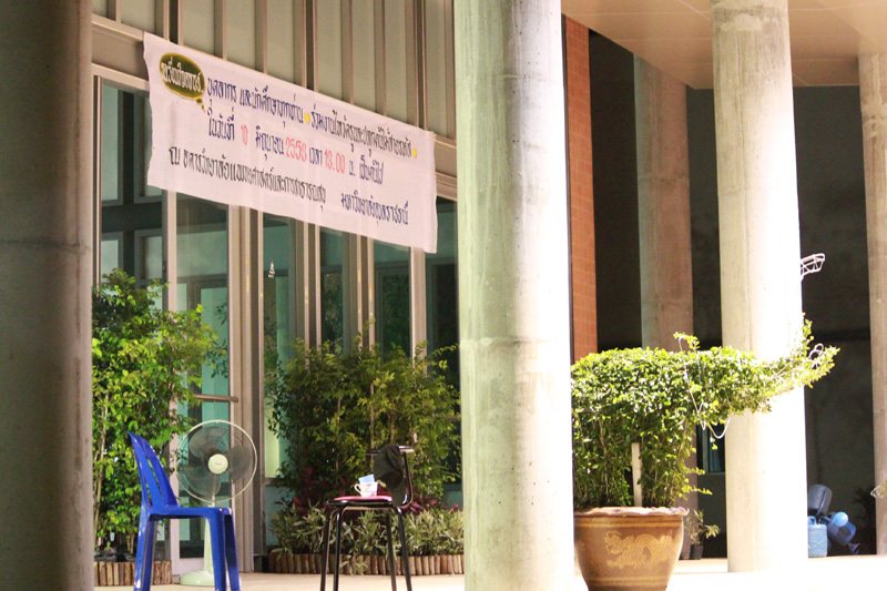 นักศึกษาทุกชั้นปีร่วมใจกันทำพาน ณ บริเวณตึก ว.แพทย์ฯ หลังใหม่ เพื่อใช้ในพิธีไหว้ครูในวันที่ 10 มิถุนายน 2553