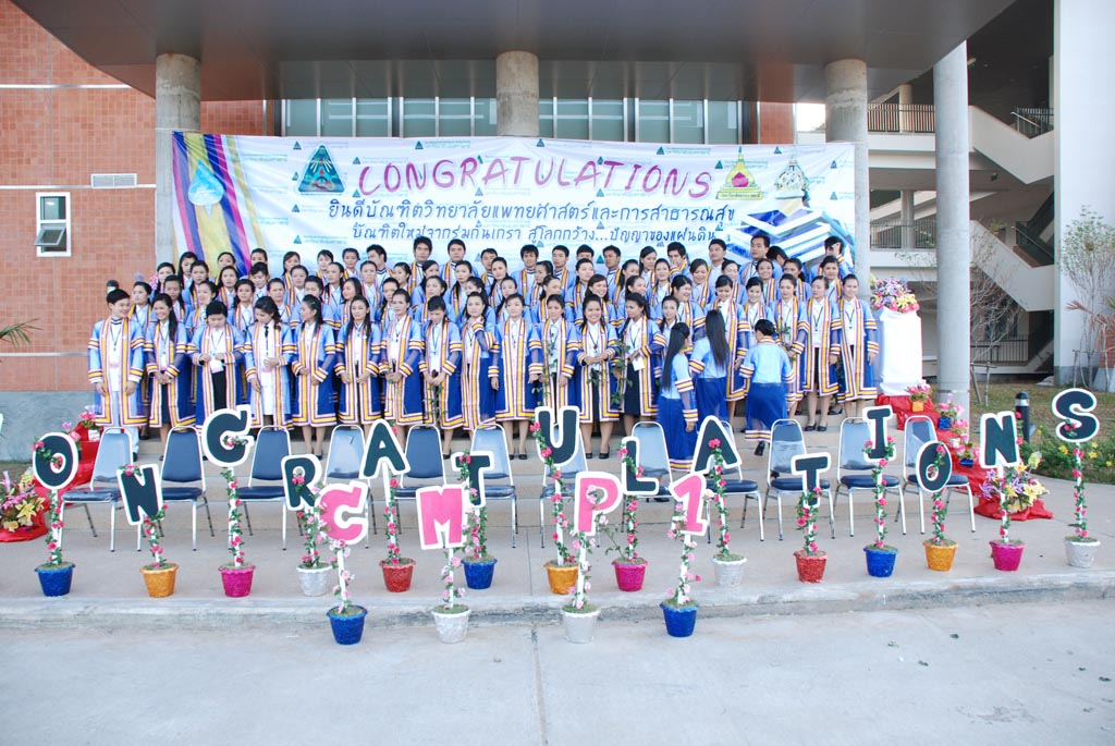 บัณฑิตพบน้องและถ่ายภาพหมู่หน้าวิทยาลัยแพทศาสตร์และการสาธารณสุข