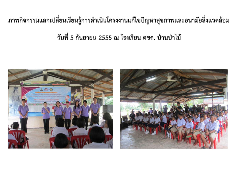หัวข้อกิจกรรมเลขที่ #496 :: กิจกรรมแลกเปลี่ยนเรียนรู้การดำเนินโครงการแก้ปัญหาสุขภาพและอนามัยสิ่งแวดล้อม วันที่ 5 กันยายน 2555 ณ โรงเรียน ตชด.บ้านป่าไม้
