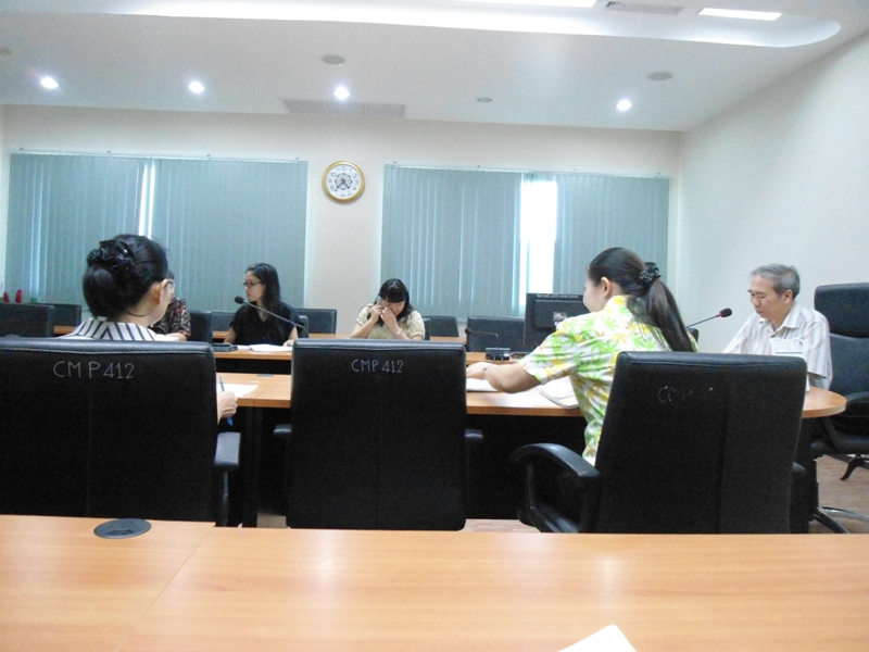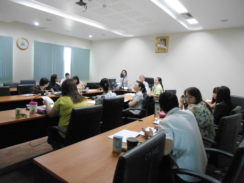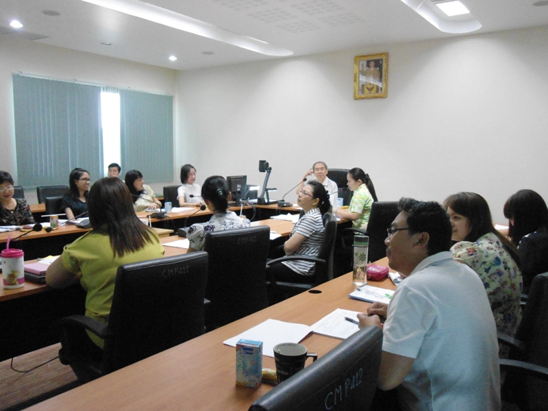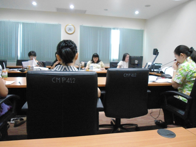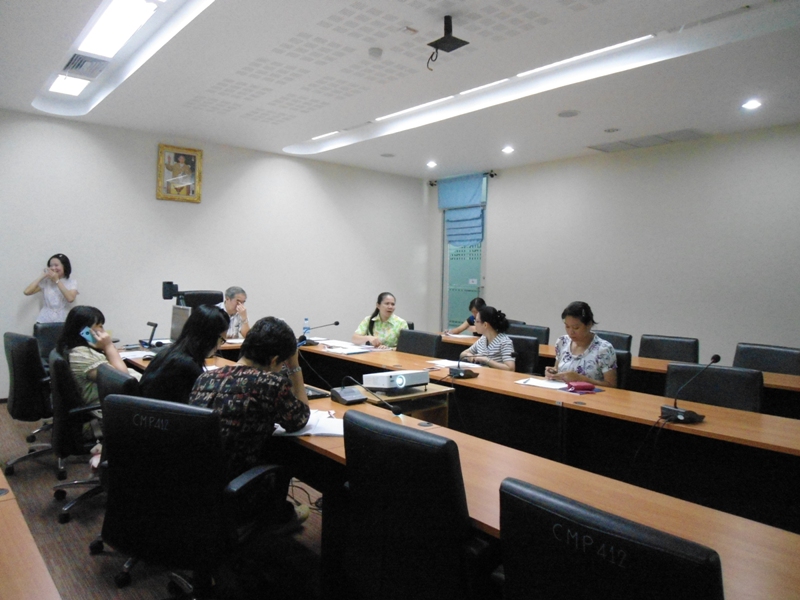 ประธานในที่ประชุมคือ รศ.นพ.ป่วน สุทธิพินิจธรรม ตำแหน่ง คณบดี และ อ.ปัณฑิตา สุขุมาลย์ ตำแหน่ง ผู้ช่วยคณบดีงานประกันคุณภาพการศึกษาและสารสนเทศ นำเสนอข้อมูลในที่ประชุม