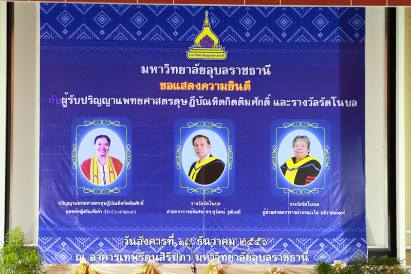 ขอแสดงความยินดีกับผู้รับปริญญาแพทยศาสตรดุษฎีบัณฑิตกิตติมศักดิ์และรางวัลรัตนโนบล ณ อาคารเทพรัตนสิริปภา มหาวิทยาลัยอุบลราชธานี