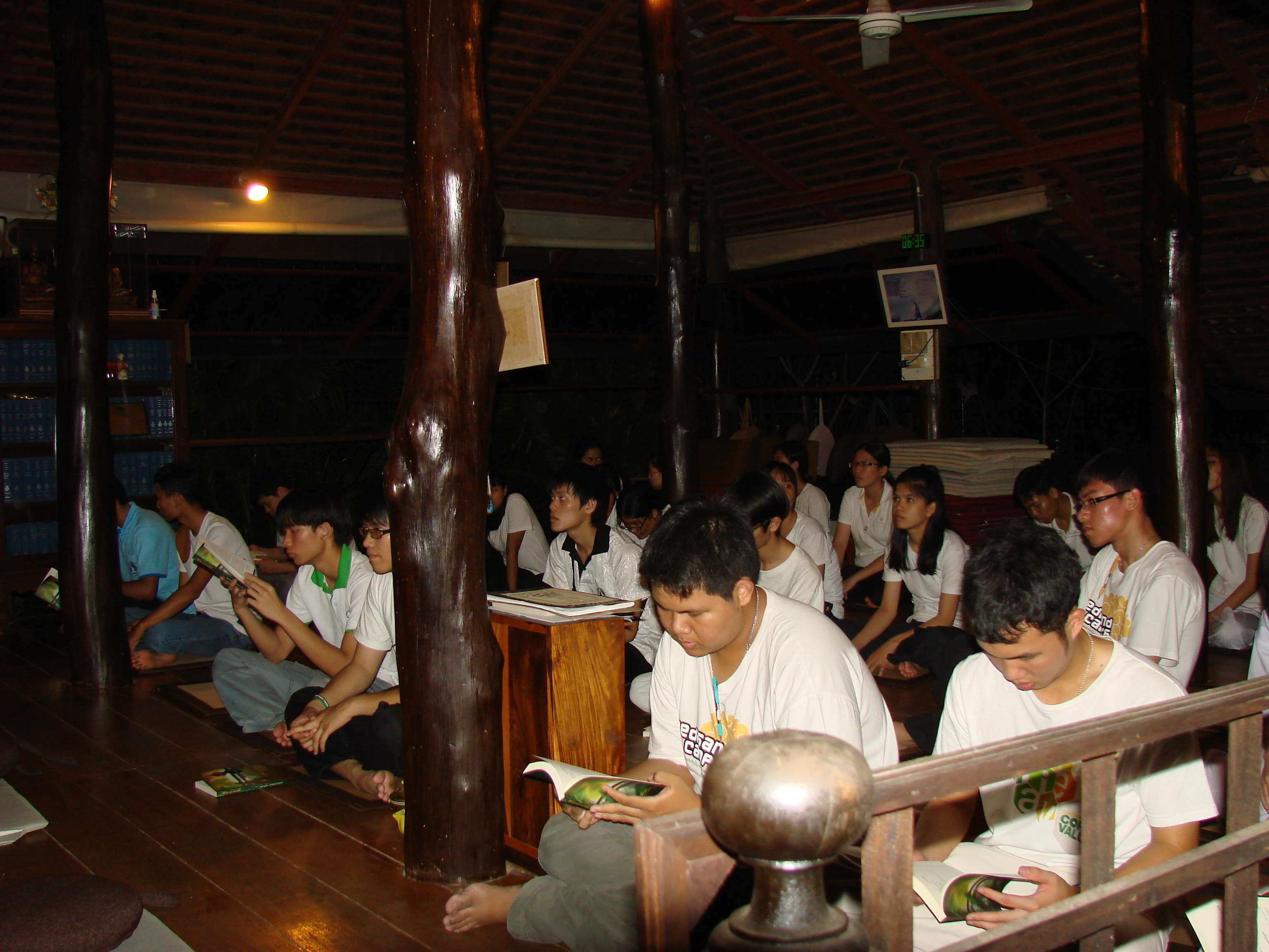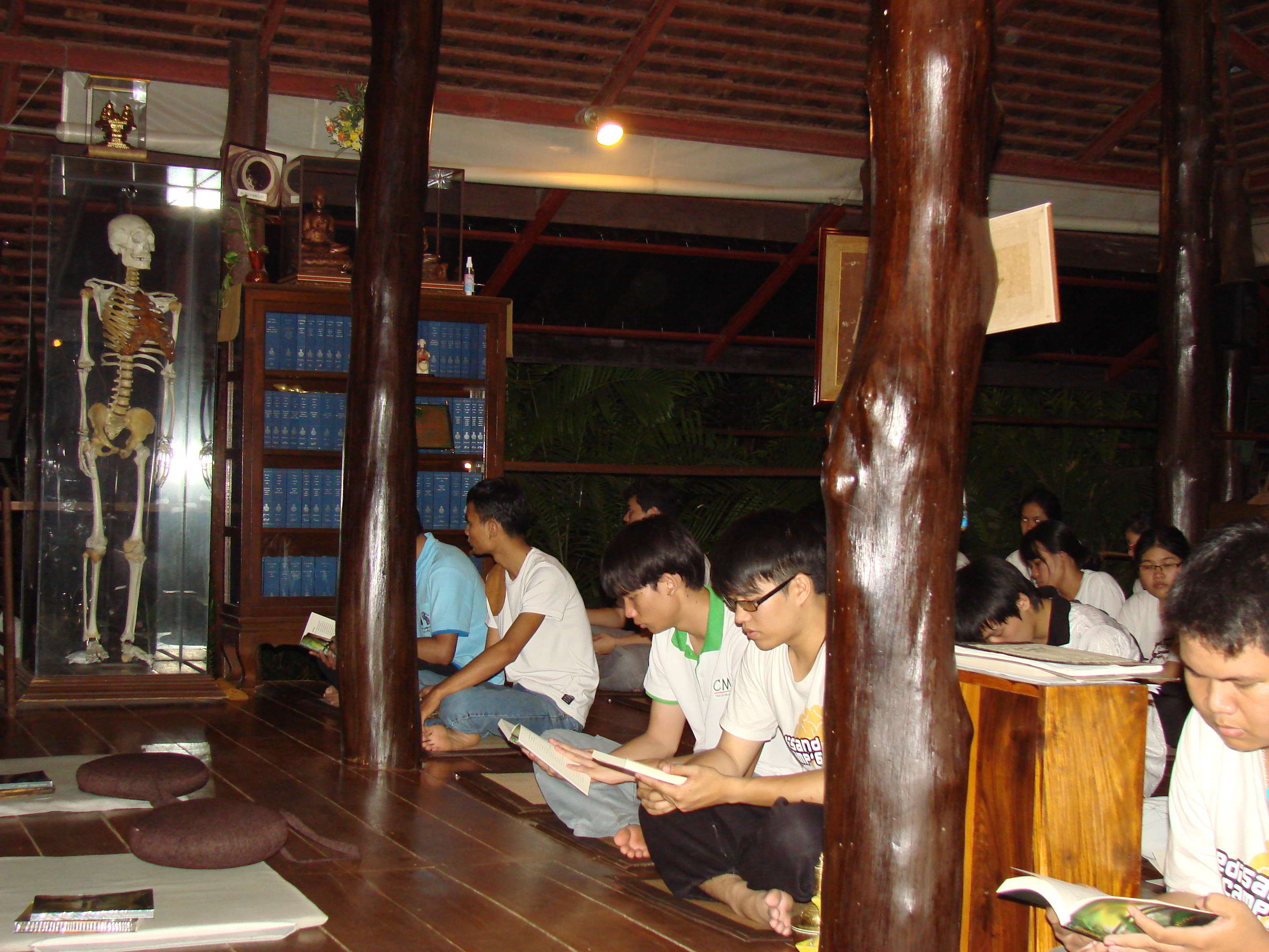 | วิทยาลัยแพทยศาสตร์และการสาธารณสุขพร้อมด้วยนักศึกษาแพทย์ฝึกกรรมฐานและสุนทรียสนทนา ณ วัดป่าบุญล้อม (สาขาวัดหนองป่าพง) อำเภอสว่างวีรวงศ์ จังหวัดอุบลราชธานี ระหว่างวันที่ 15-21 มีนาคม 2557 |