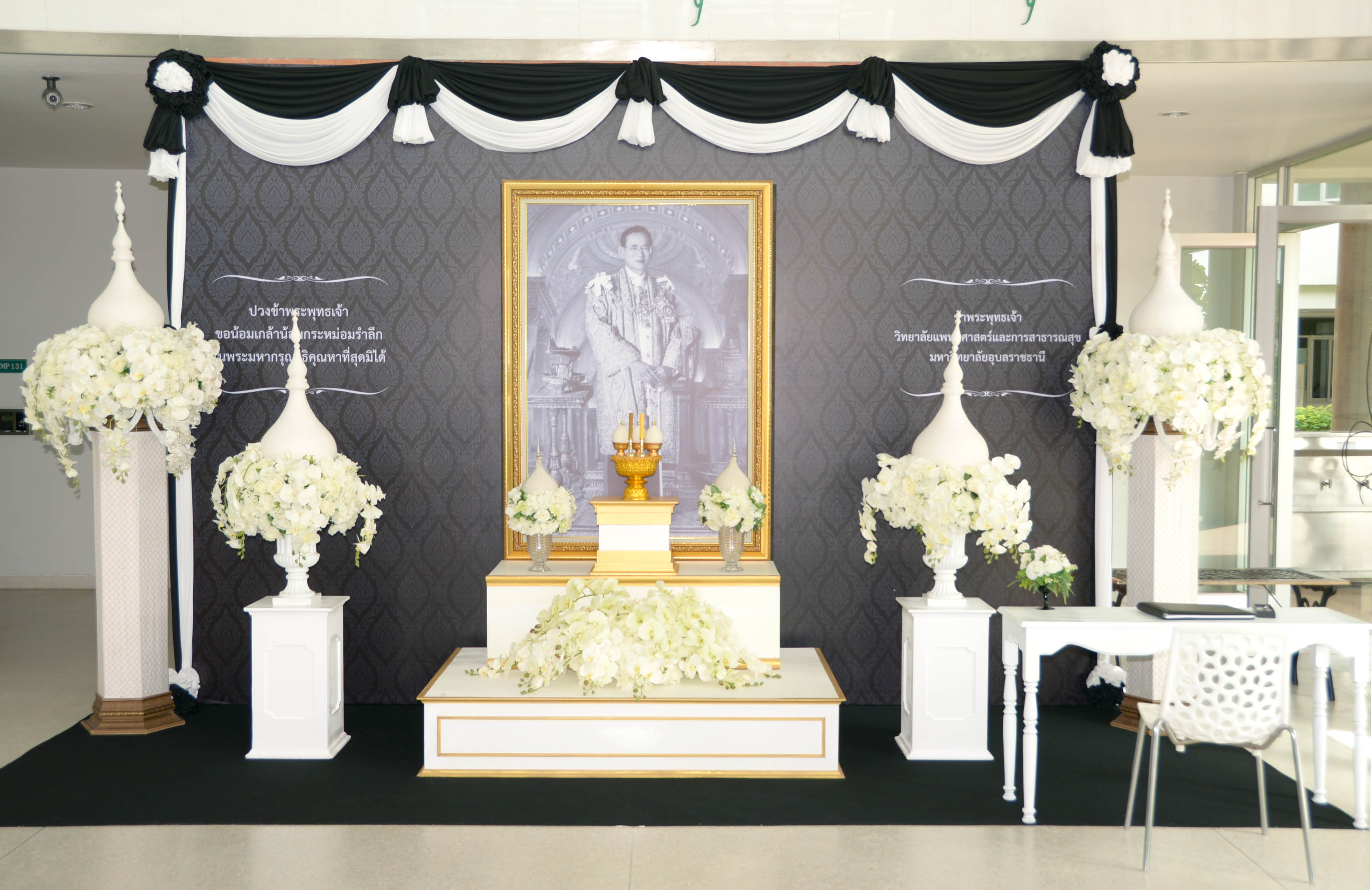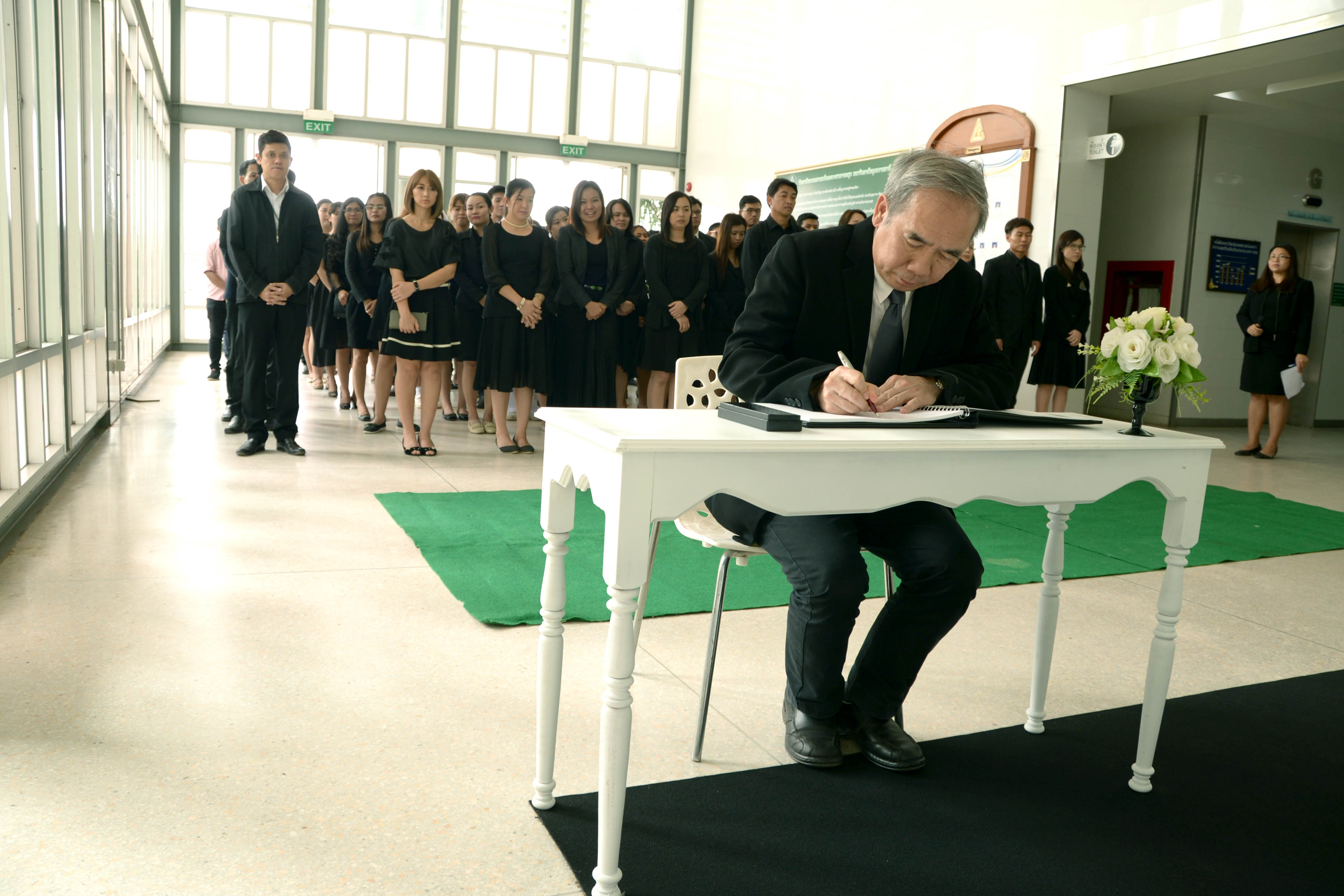พิธีน้อมเกล้าน้อมกระหม่อมรำลึกในพระมหากรุณาธิคุณและลงนามถวายความอาลัยพระบาทสมเด็จพระปรมินทรมหาภูมิพลอดุลยเดช ณ ห้องโถงชั้น 1 อาคารวิทยาลัยแพทยศาสตร์และการสาธารณสุข