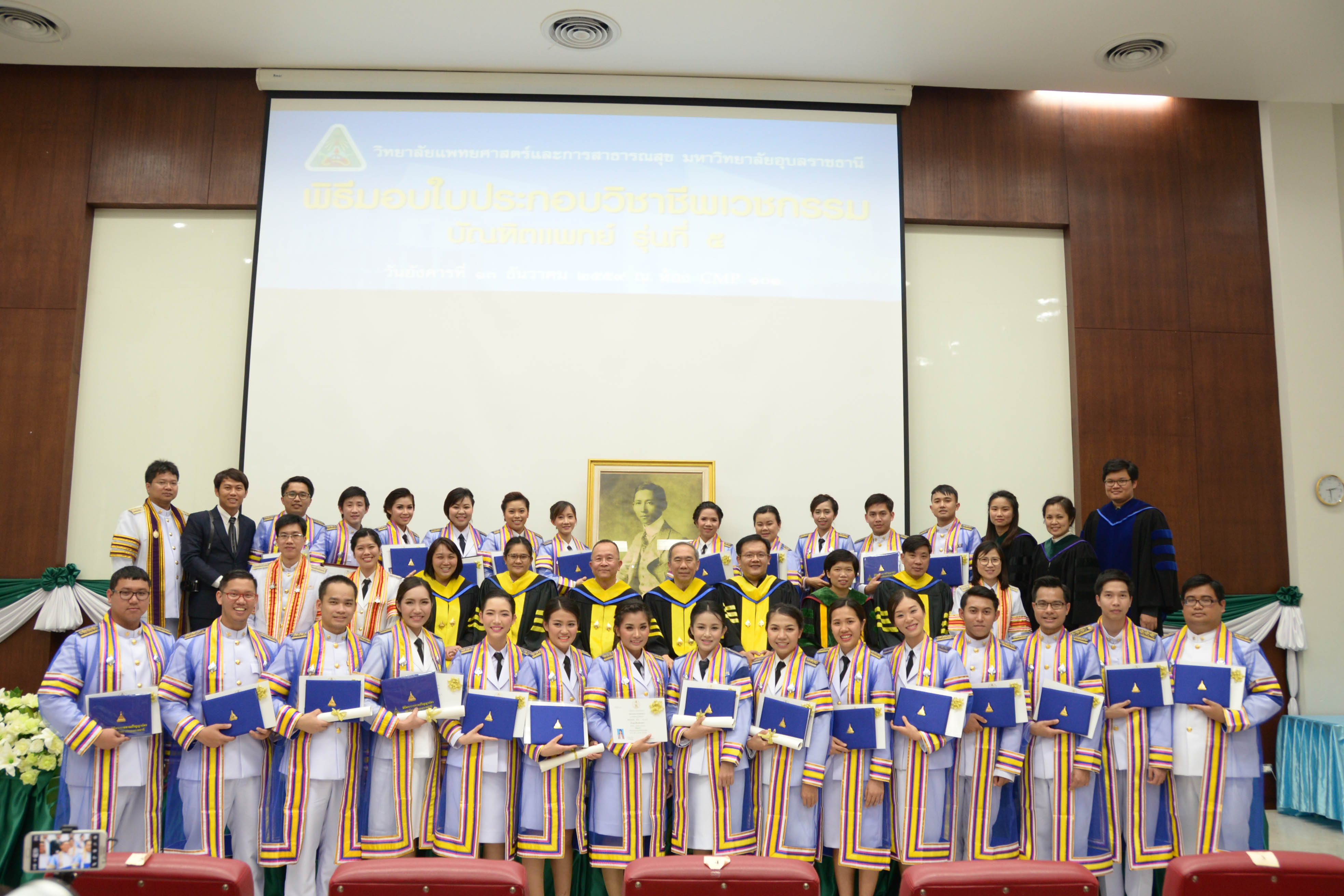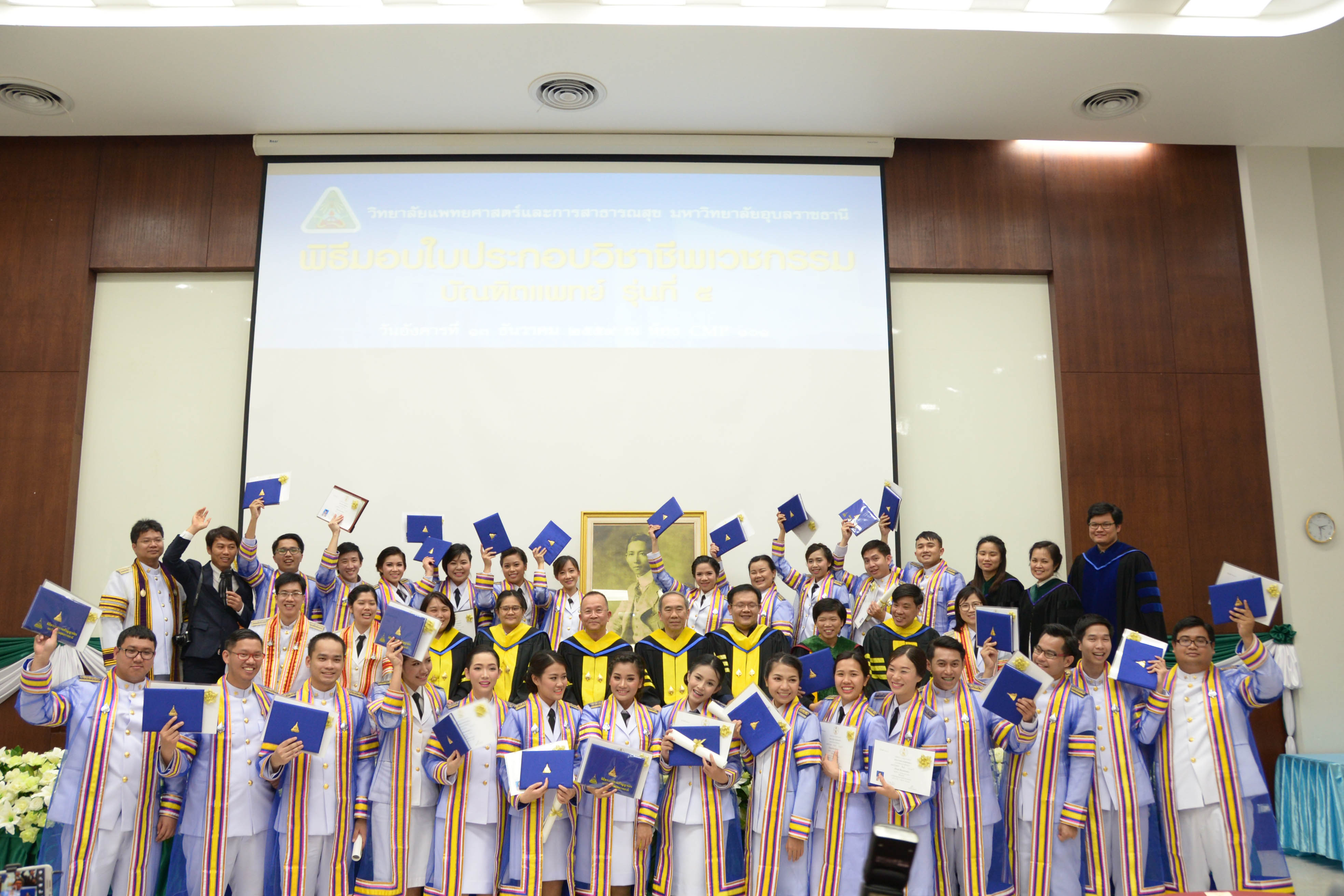 ภาพพิธีมอบใบประกอบวิชาชีพแพทย์ รุ่นที่ 5 วิทยาลัยแพทยศาสตร์และการสาธารณสุข ณ ห้องประชุม 101
