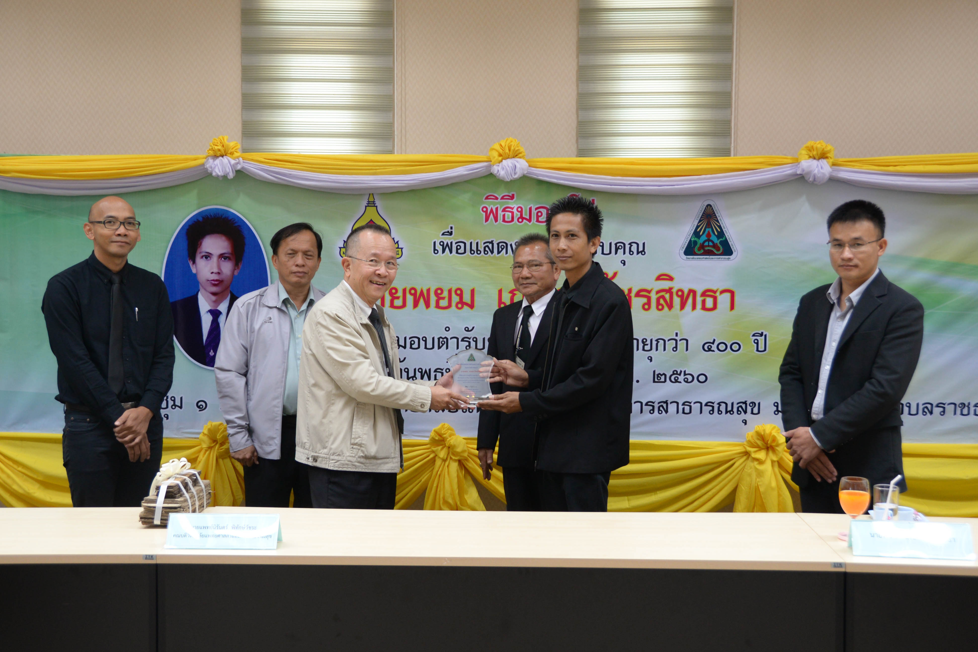 | พิธีมอบโล่ เพื่อแสดงความขอบคุณ แด่ คุณพยม เกษตรวัชรสิทธา ในโอกาสมอบตำรับยาสมัยโบราณอายุกว่า ๔๐๐ ปี