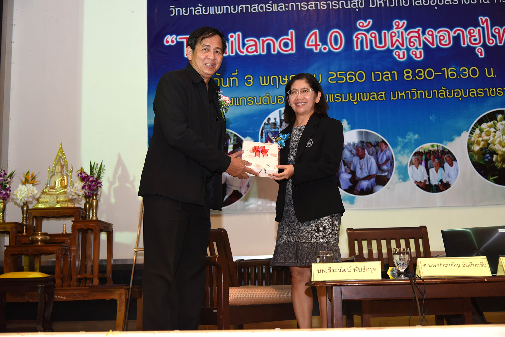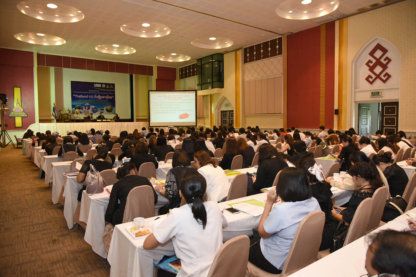ภาพบรรยากาศการประชุมวิชาการ ประจำปี วิทยาลัยแพทยศาสตร์และการสาธารณสุข ครั้งที่ 6 Thailand 4.0 กับผู้สูงอายุไทย ปาฐกถาพิเศษ โดย นายแพทย์วิชัย โชควิวัฒน