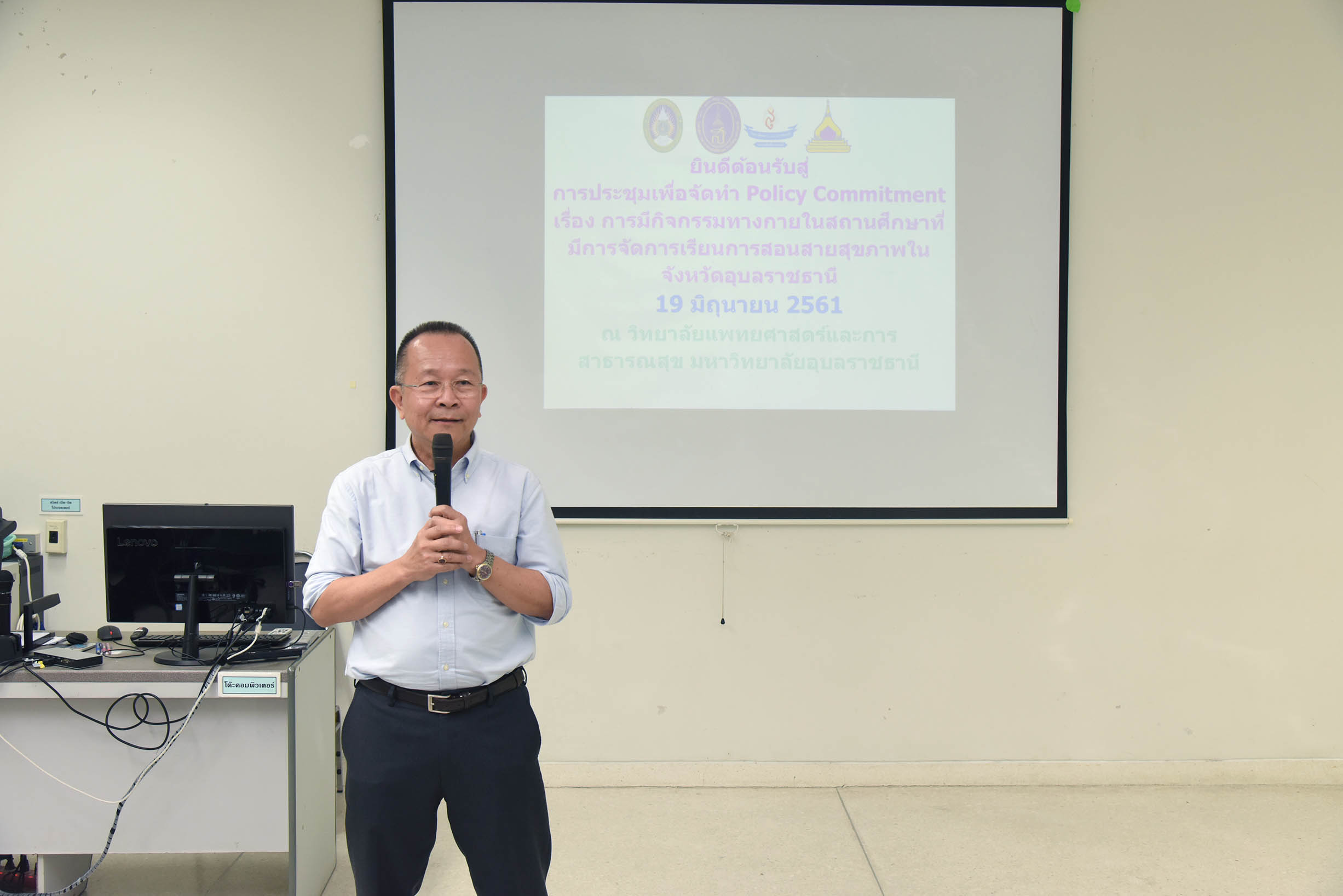 | การประชุมจัดทำ Policy Commitment เรื่องการมีกิจกรรมทางกายภาพในสถานศึกษา ที่มีการจัดการเรียนการสอนสายสุขภาพ