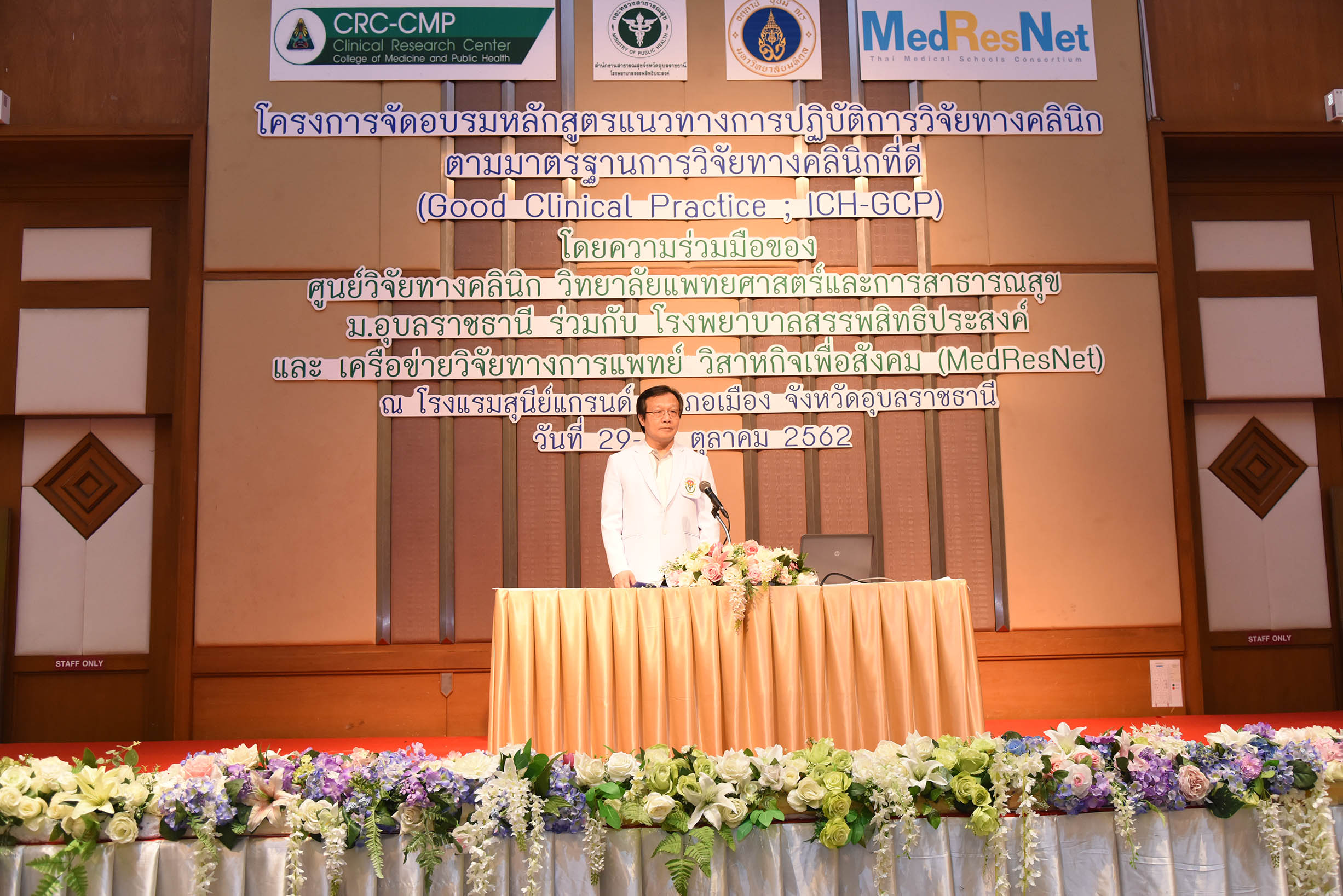 | การอบรมหลักสูตรแนวทางการดำเนินการวิจัยทางคลินิกที่ดี โดยความร่วมมือของศูนย์วิจัยทางคลินิก วิทยาลัยแพทยศาสตร์และการสาธารณสุข มหาวิทยาลัอุบลราชธานี ร่วมกับ โรงพยาบาลสรรพสิทธิประสงค์ และ เครือข่ายวิจัยทางการแพทย์ วิสาหกิจเพื่อสังคม (MedResNet) ระหว่างวันที่ 29-30 ตุลาคม 2562 ณ ห้องประชุมทับทิมสยาม 3 โรงแรมสุนีย์ แกรนด์ คอนเวนชั่น จังหวัดอุบลราชธานี (สามารถดาวน์โหลดภาพทั้งหมดได้ที่คลังภาพ goo.gl/gIFJBd ) |