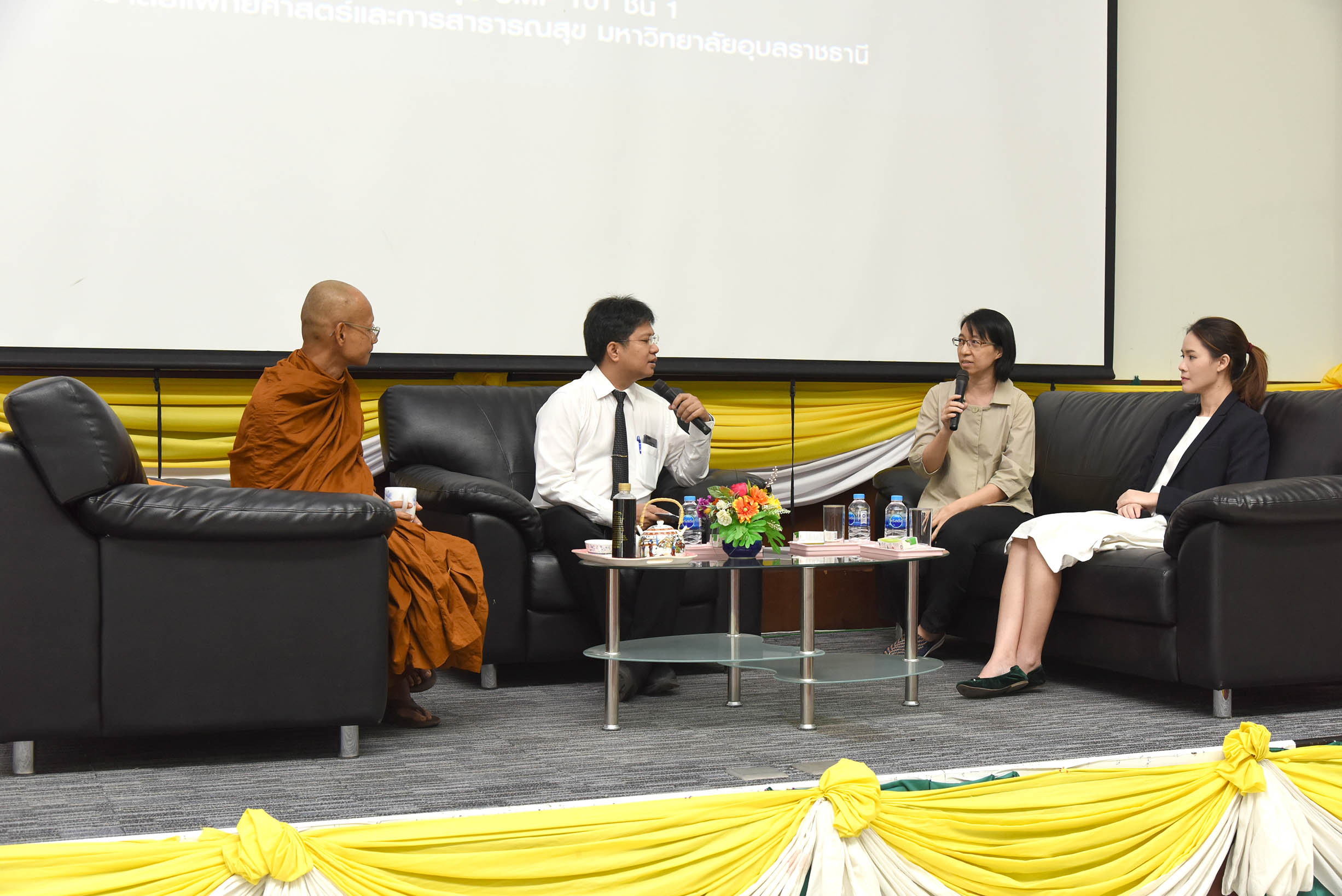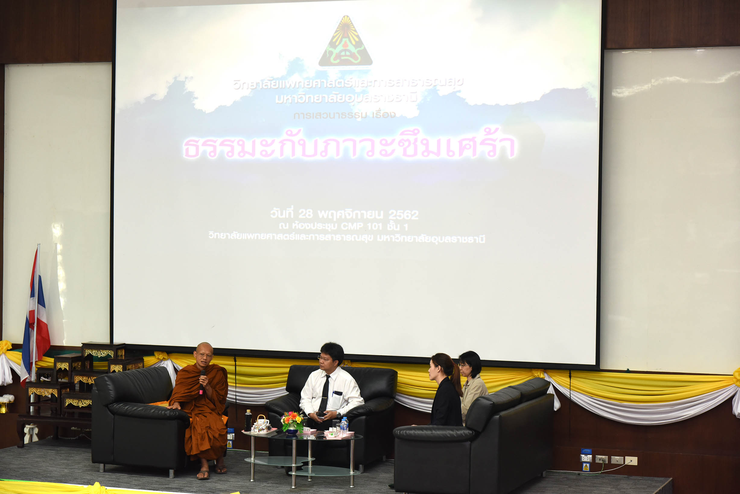 | การเสวนาธรรมะ เรื่อง "ธรรมะกับภาวะซึมเศร้า" วันที่ 28 พฤศจิกายน 2562 ณ ห้องประชุม CMP 101 วิทยาลัยแพทยศาสตร์และการสาธารณสุข มหาวิทยาลัยอุบลราชธานี (สามารถดาวน์โหลดภาพทั้งหมดได้ที่คลังภาพ goo.gl/gIFJBd ) |