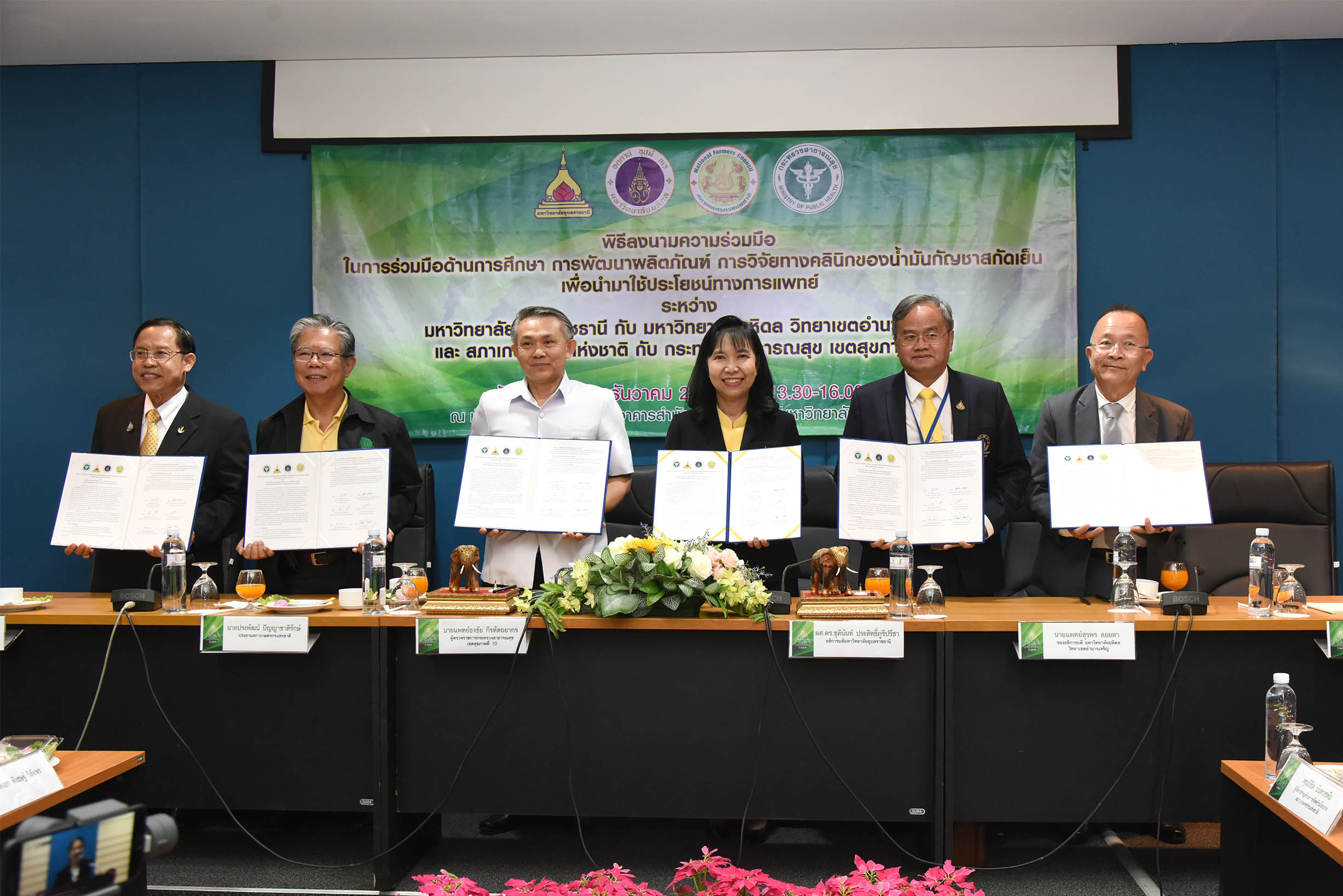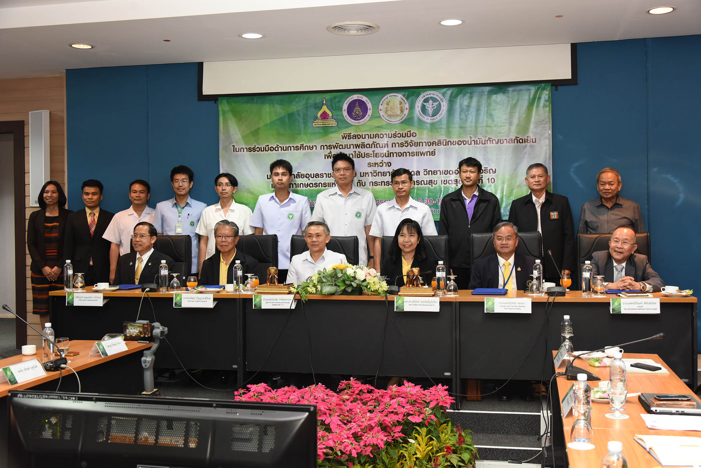 | พิธีลงนามความร่วมมือในการร่วมมือด้านการศึกษา การพัฒนาผลิตภัณฑ์ การวิจัยทางคลินิกของน้ำมันกัญชาสกัดเย็น เพื่อนำมาใช้ประโยชน์ทางการแพทย์