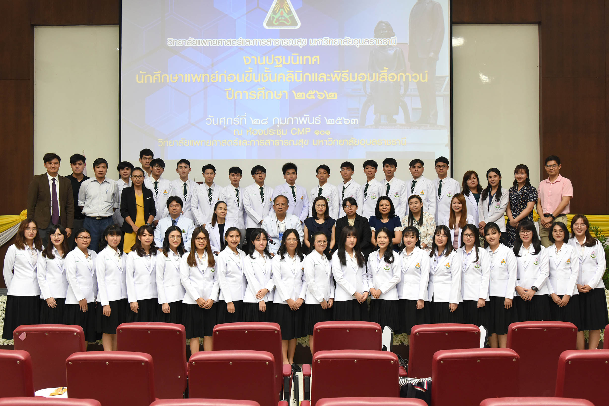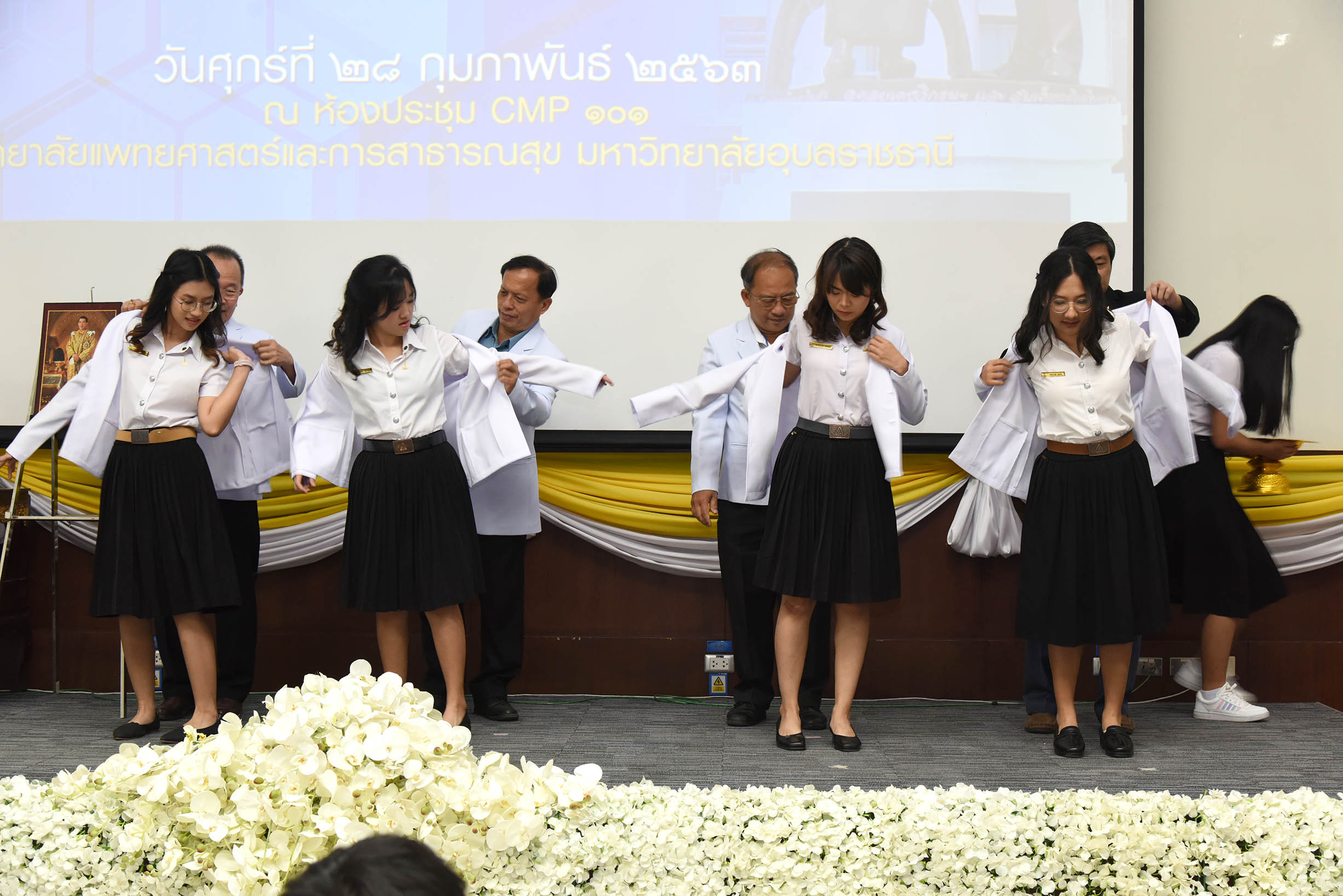| งานปฐมนิเทศก่อนขึ้นชั้นคลินิกและพิธีมอบเสื้อกาวน์สำหรับนักศึกษาแพทย์ ประจำปีการศึกษา 2562 ณ ห้องประชุม CMP 101 วิทยาลัยแพทยศาสตร์และการสาธารณสุข มหาวิทยาลัยอุบลราชธานี (สามารถดาวน์โหลดภาพทั้งหมดได้ที่คลังภาพ goo.gl/gIFJBd ) |