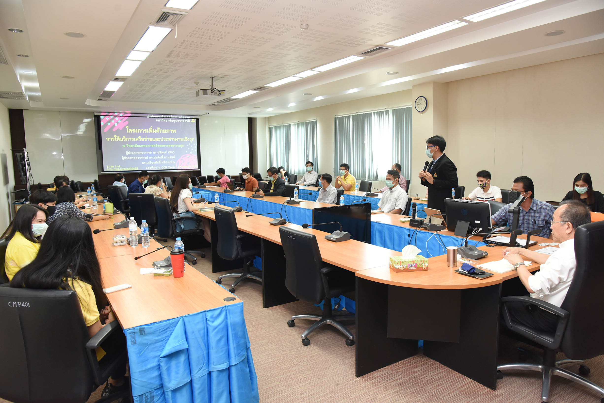 | ภาพกิจกรรม OCN RoadShow สำนักคอมพิวเตอร์และเครือข่าย เพื่อตอบวิสัยทัศน์ ปี 63-67 จัดหาและพัฒนาทรัพยากรด้านเทคโนโลยีสารสนเทศ ณ ห้องประชุม CMP 401 วิทยาลัยแพทยศาสตร์และการสาธารณสุข มหาวิทยาลัยอุบลราชธานี (สามารถดาวน์โหลดภาพทั้งหมดได้ที่คลังภาพ goo.gl/gIFJBd ) |