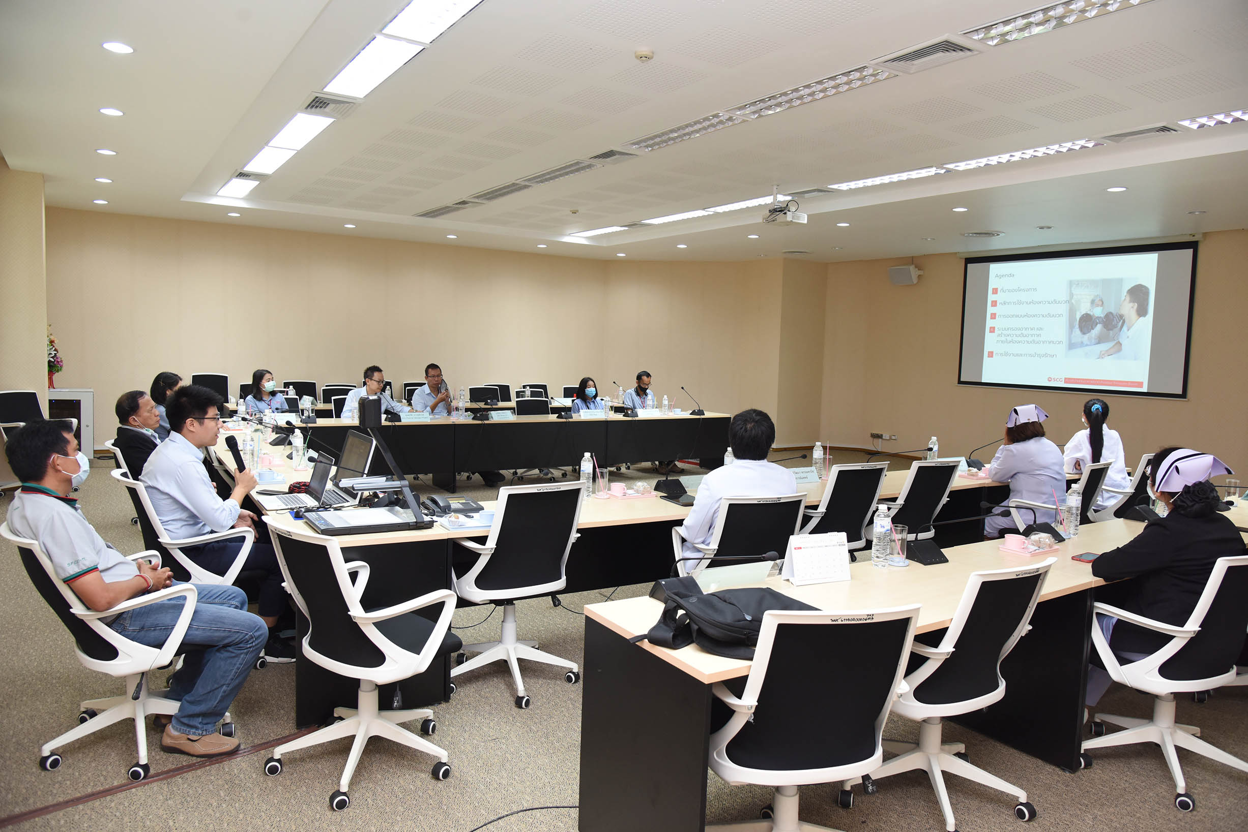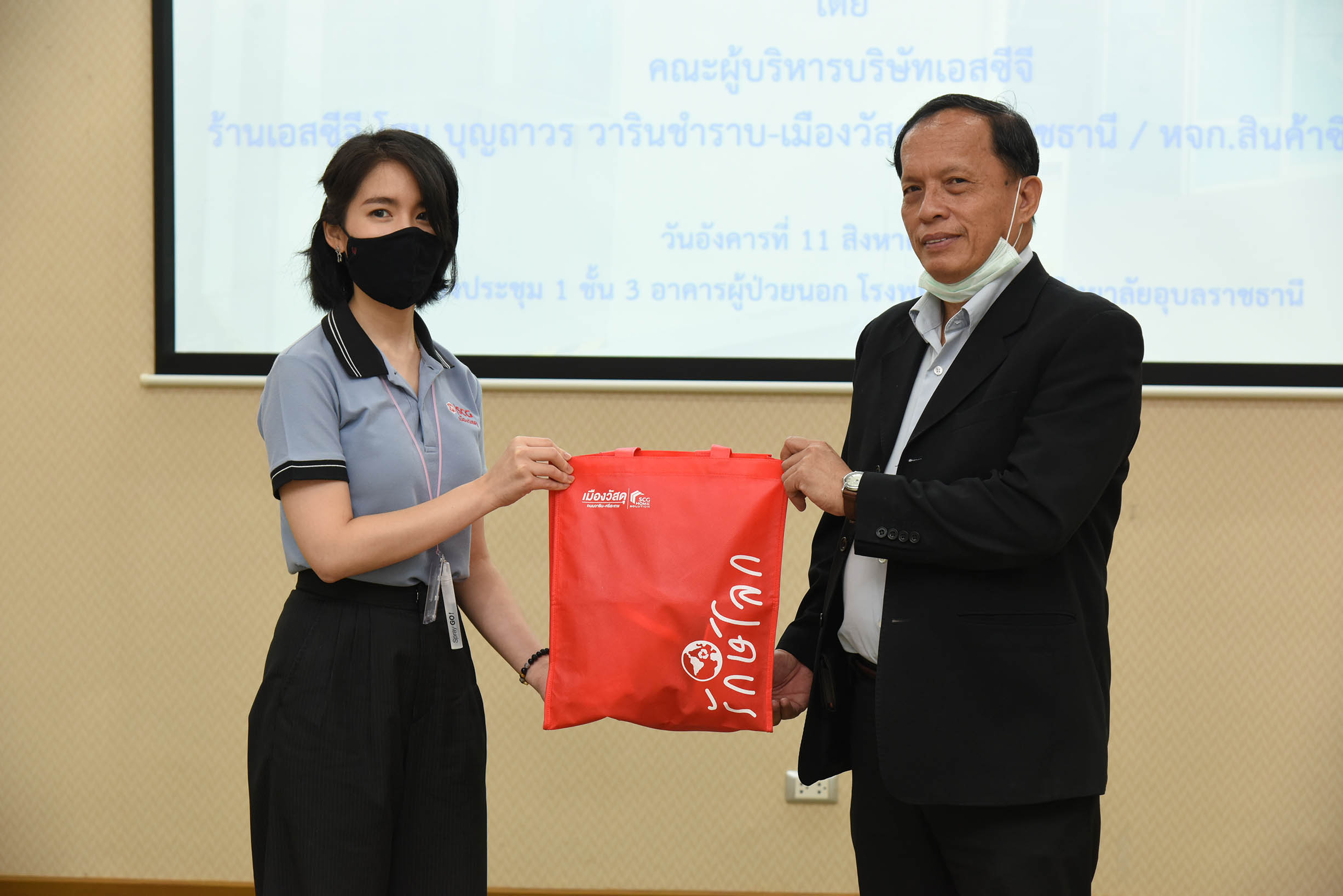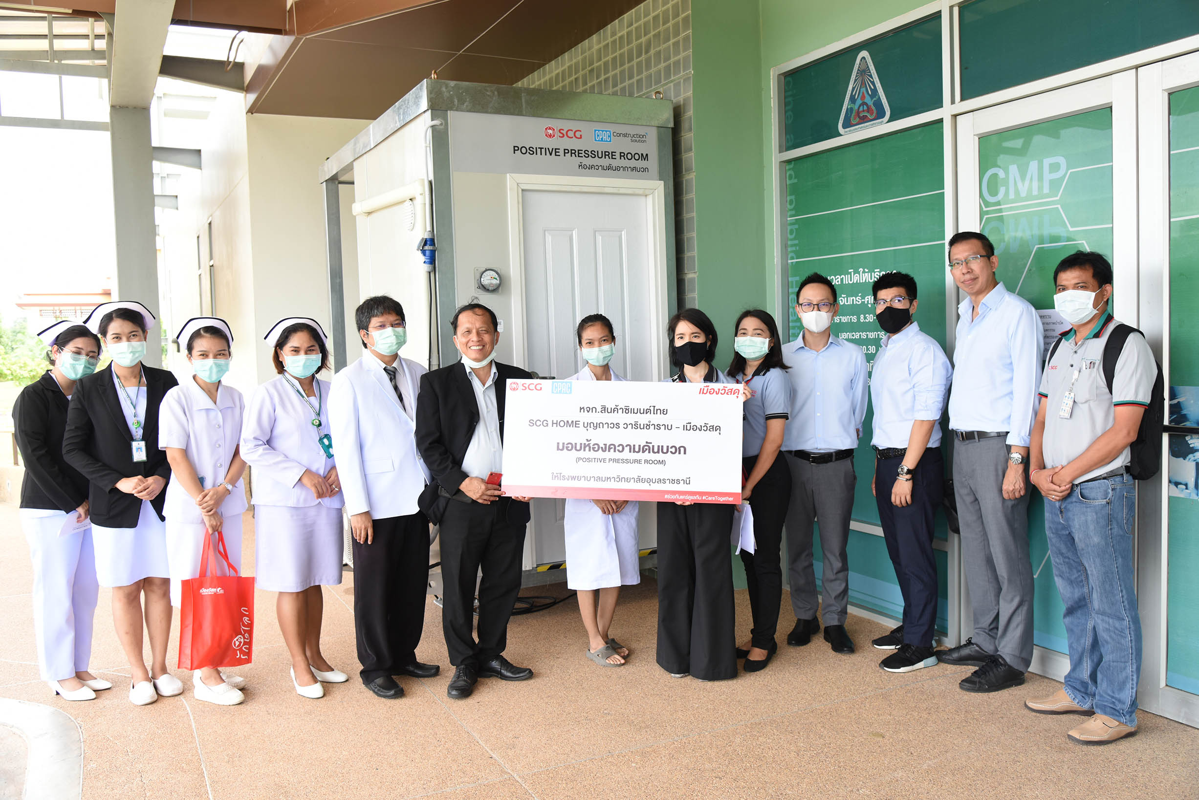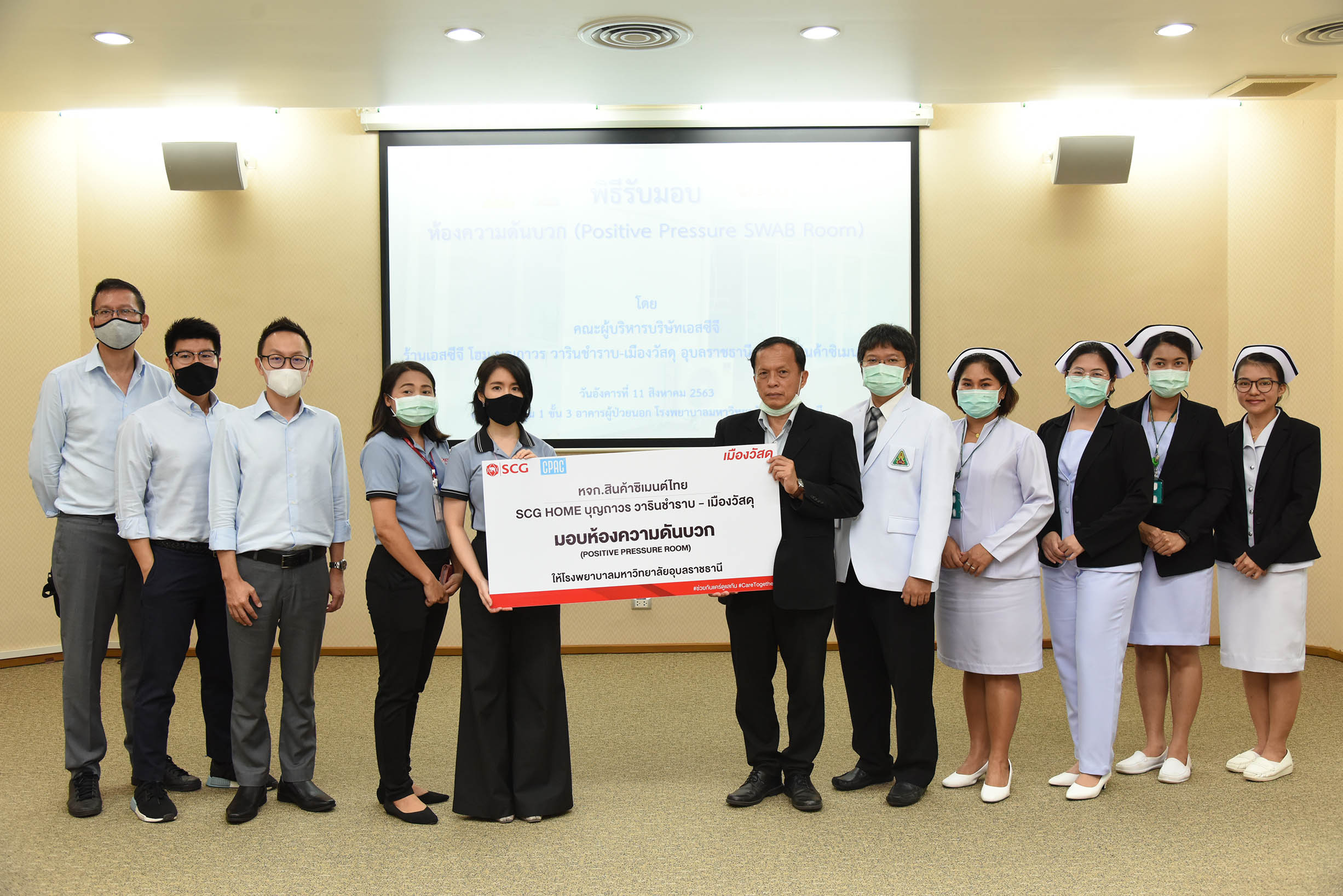 | ห้างหุ้นส่วนจำกัดสินค้าซิเมนต์ไทย (เมืองวัสดุ) มีความประสงค์ขอบริจาคห้องความดันบวกสำหรับบุคลากรทางการแพทย์เก็บตัวอย่างเชื้อ มูลค่า 100,000 บาท ให้กับโรงพยาบาลมหาวิทยาลัยอุบลราชธานี เพื่อใช้ในประโยชน์ทางการแพทย์เพื่อความปลอดภัยในการปฏิบัติงานของบุคลากร วันที่ 11 สิงหาคม 2563 ณ อาคารผู้ป่วยนอก โรงพยาบาลมหาวิทยาลัยอุบลราชธานี (สามารถดาวน์โหลดภาพทั้งหมดได้ที่คลังภาพ goo.gl/gIFJBd ) |