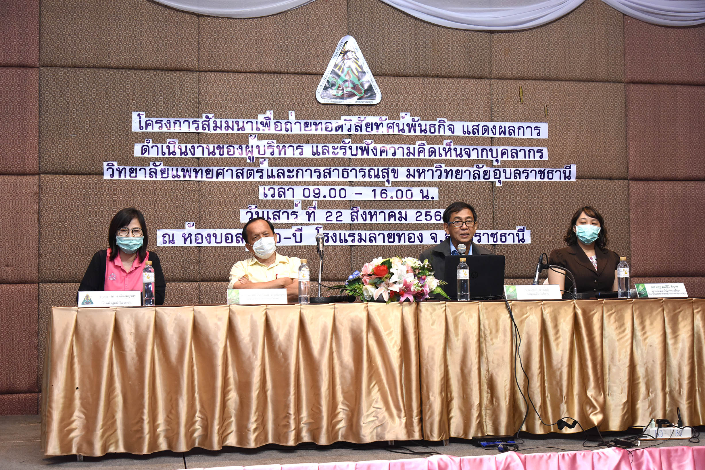 | กิจกรรมโครงการสัมมนาเพื่อการถ่ายทอดวิสัยทัศน์ พันธกิจ แสดงผลการดำเนินการของผู้บริหารและรับฟังความคิดเห็นจากบุคคลากร วิทยาลัยแพทยศาสตร์และการสาธารณสุข มหาวิทยาลัยอุบลราชธานี