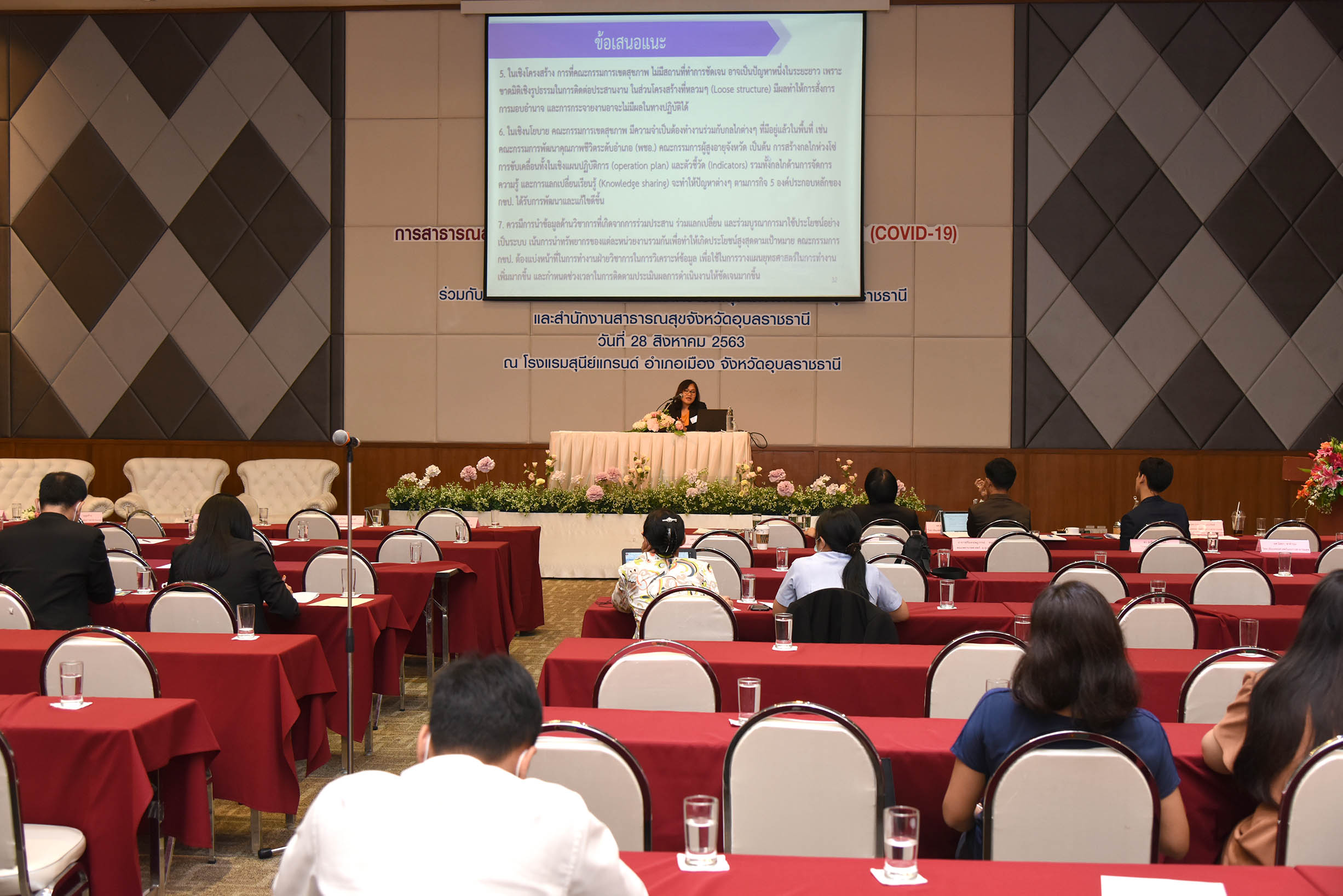 | ประชุมวิชาการ ประจำปี 2563 "การสาธารณสุขไทยในยุคการระบาดของโรคติดเชื้อไวรัสโคโรนา 2019 (COVID-19)" วันที่ 28 สิงหาคม 2563 ณ โรงแรมสุนีย์ แกรนด์ โฮเต็ล แอนด์ คอนเวนชั่น เซ็นเตอร์ อ.เมือง จ.อุบลราชธานี (สามารถดาวน์โหลดภาพทั้งหมดได้ที่คลังภาพ goo.gl/gIFJBd ) |
