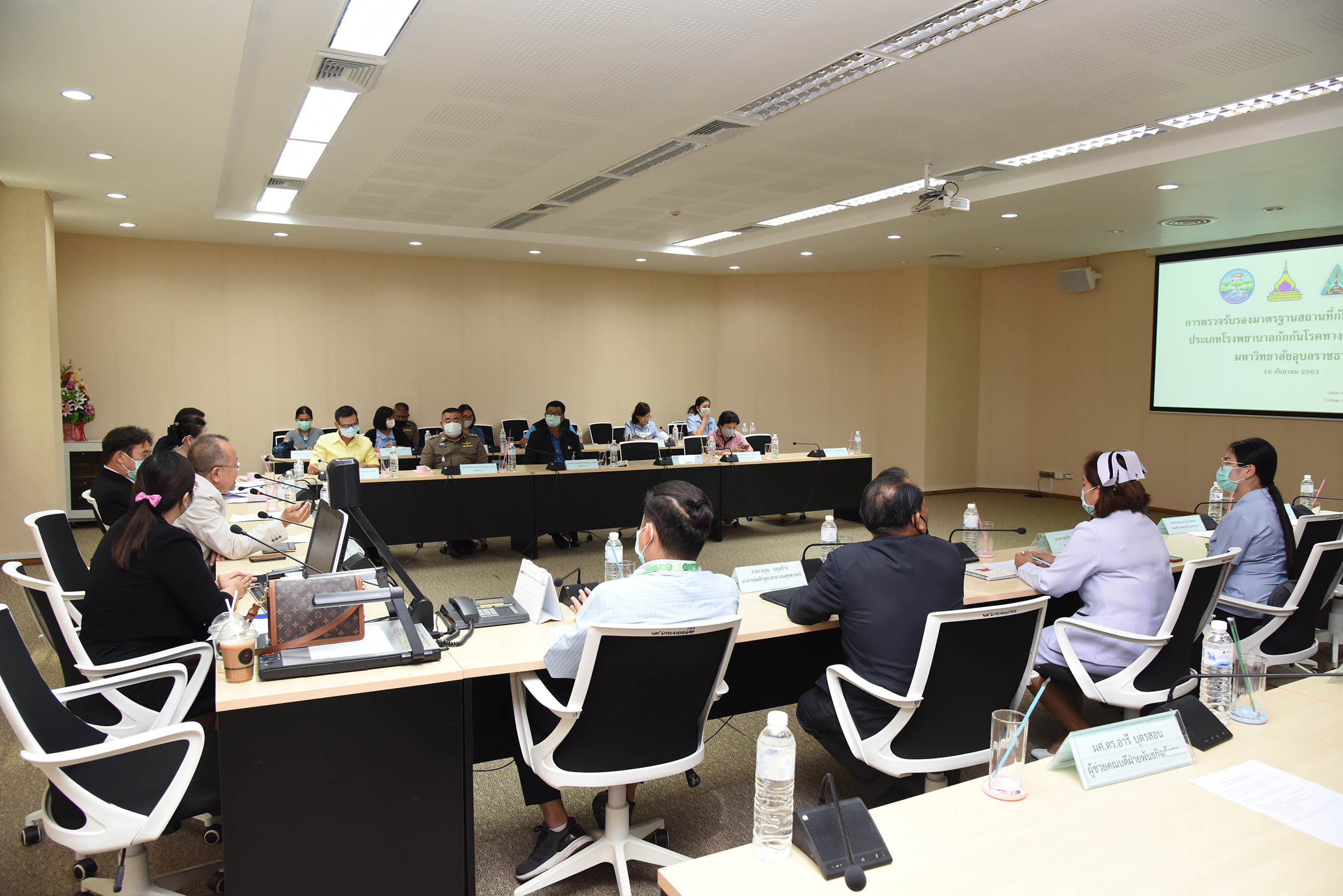 | โรงพยาบาลมหาวิทยาลัยอุบลราชธานีรับการตรวจประเมินสถานที่ ในการจัดตั้งและดำเนินการกักกันรูปแบบเฉพาะองค์กร มหาวิทยาลัยอุบลราชธานี วันที่ 16 กันยายน 2563ณ ห้องประชุม ชั้น 3 อาคารผู้ป่วยนอก โรงพยาบาลมหาวิทยาลัยอุบลราชธานี วิทยาลัยแพทยศาสตร์และการสาธารณสุข มหาวิทยาลัยอุบลราชธานี (สามารถดาวน์โหลดภาพทั้งหมดได้ที่คลังภาพ goo.gl/gIFJBd ) |