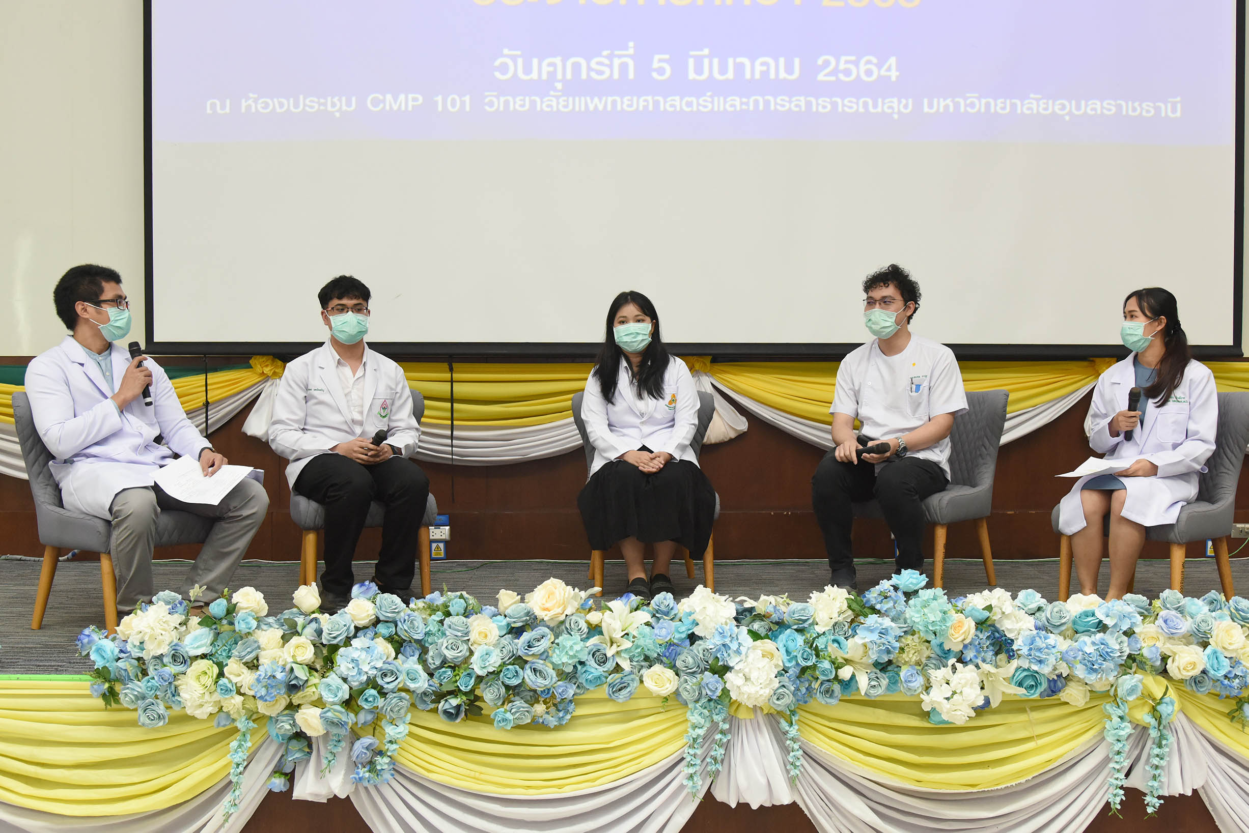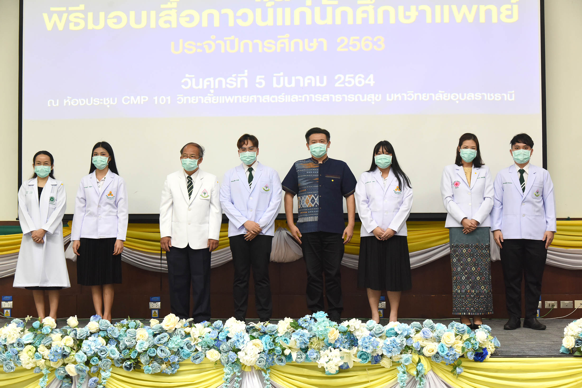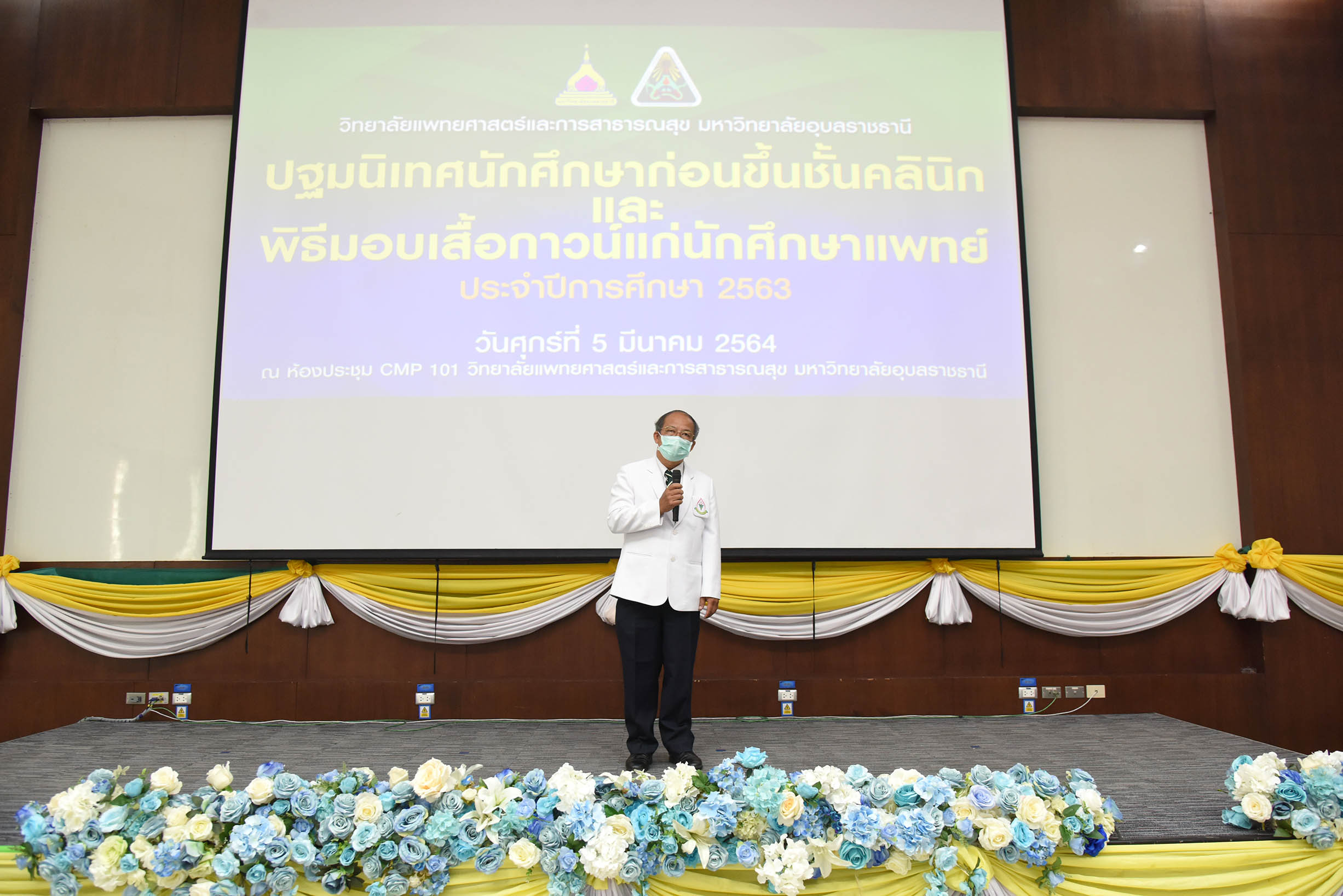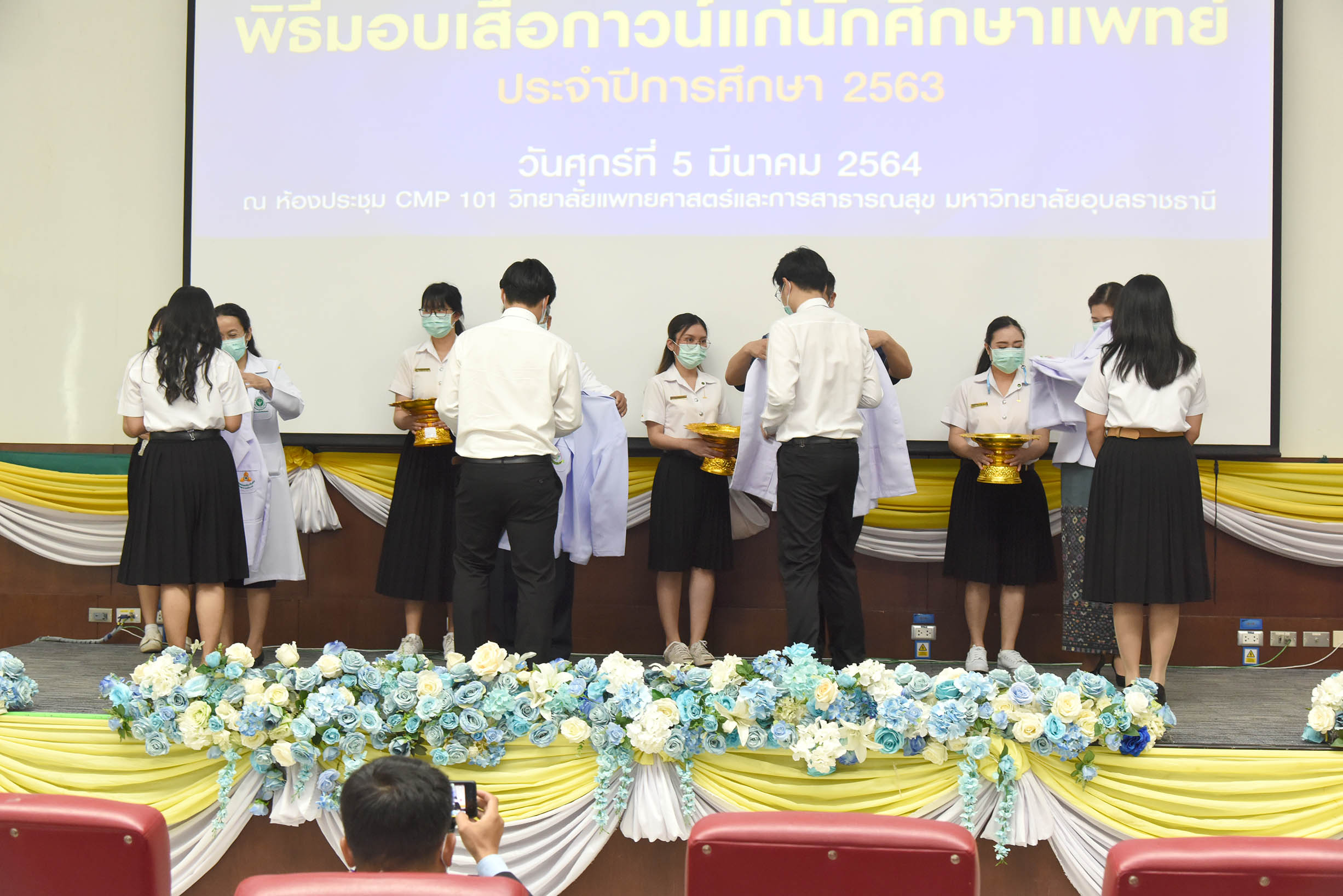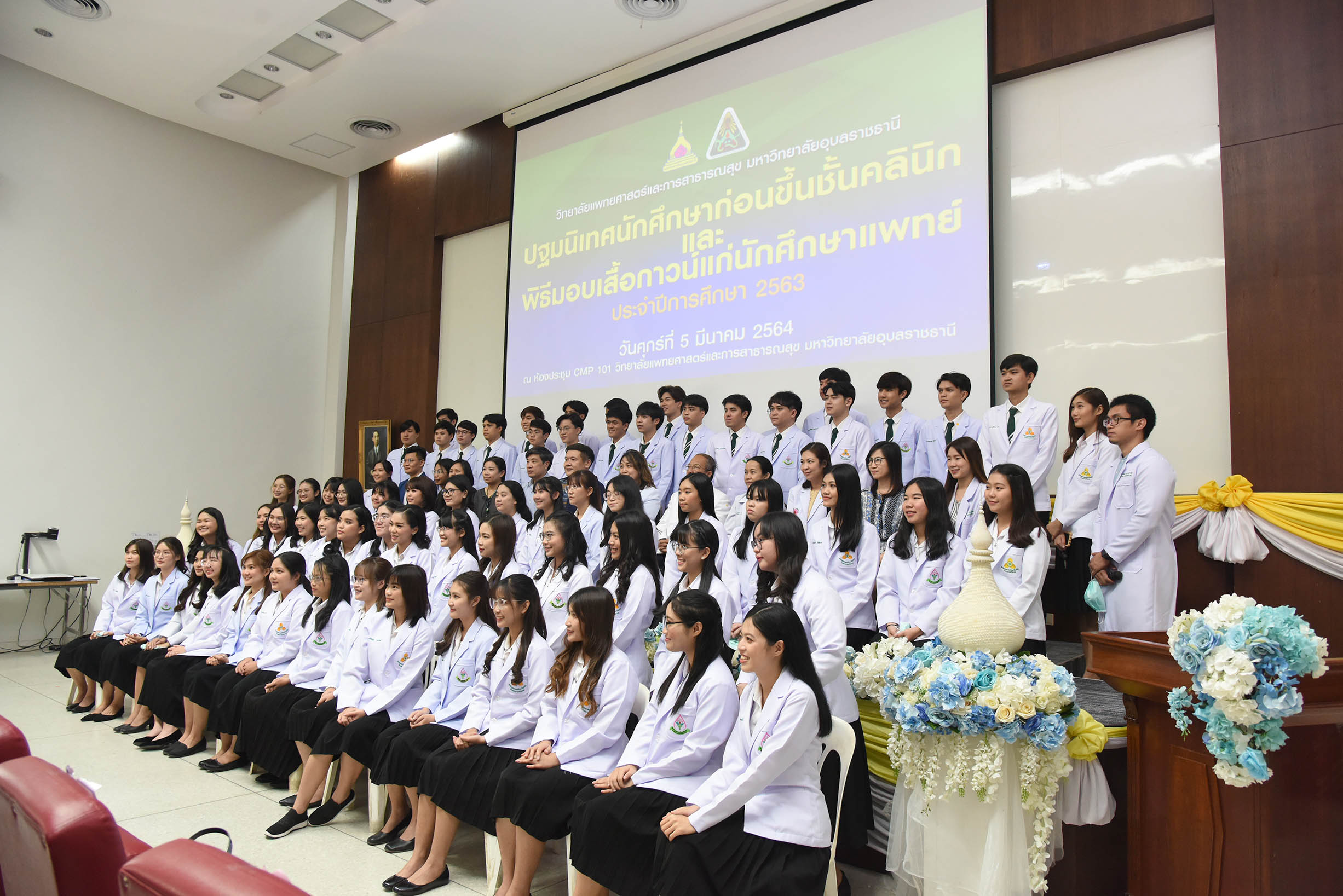 | งานปฐมนิเทศนักศึกษาก่อนขึ้นชั้นคลินิกและพิธีมอบเสื้ออกาวน์แก่นักศึกษาแพทย์ ชั้นปีที่ 3 ประจำปีการศึกษา 2563 วันที่ 5 มีนาคม 2564 ณ ห้องประชุม CMP 101 วิทยาลัยแพทยศาสตร์และการสาธารณสุข มหาวิทยาลัยอุบลราชธานี (สามารถดาวน์โหลดภาพทั้งหมดได้ที่ https://drive.google.com/drive/u/0/folders/1qGntmoKKaJNfq0vrw5Y07hsXvmgvvx6J) |