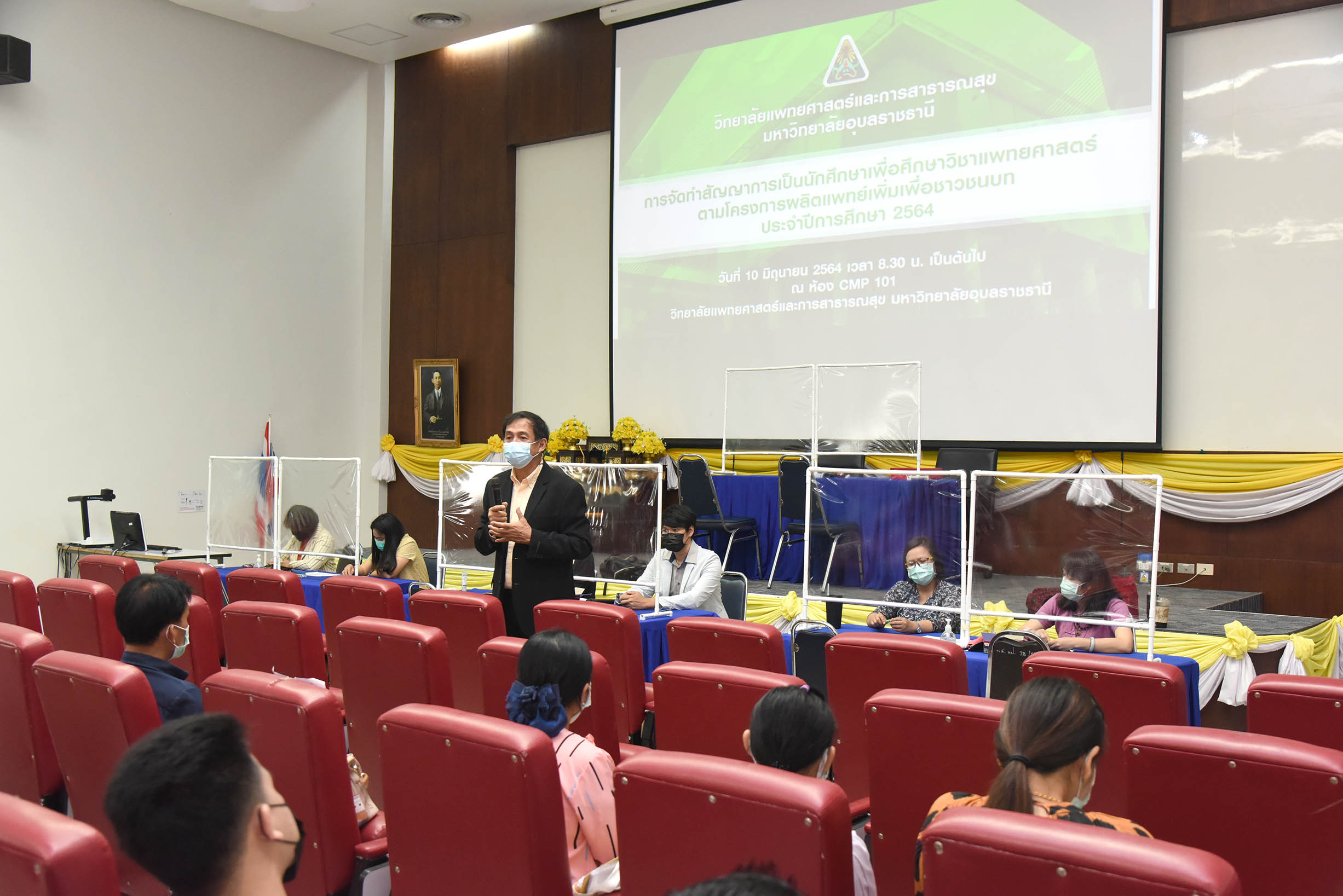 | การจัดทำสัญญาการเป็นนักศึกษาเพื่อศึกษาวิชาแพทยศาสตร์ ตามโครงการผลิตแพทย์เพิ่มเพื่อชาวชนบท ประจำปีการศึกษา 2564 ณ ห้องประชุม CMP 101 วิทยาลัยแพทยศาสตร์และการสาธารณสุข (สามารถดาวน์โหลดภาพทั้งหมดได้ที่ https://drive.google.com/drive/u/1/folders/1lV0Y5J6kPuTjReFaPt1hFzJvjyfGbCqF) |