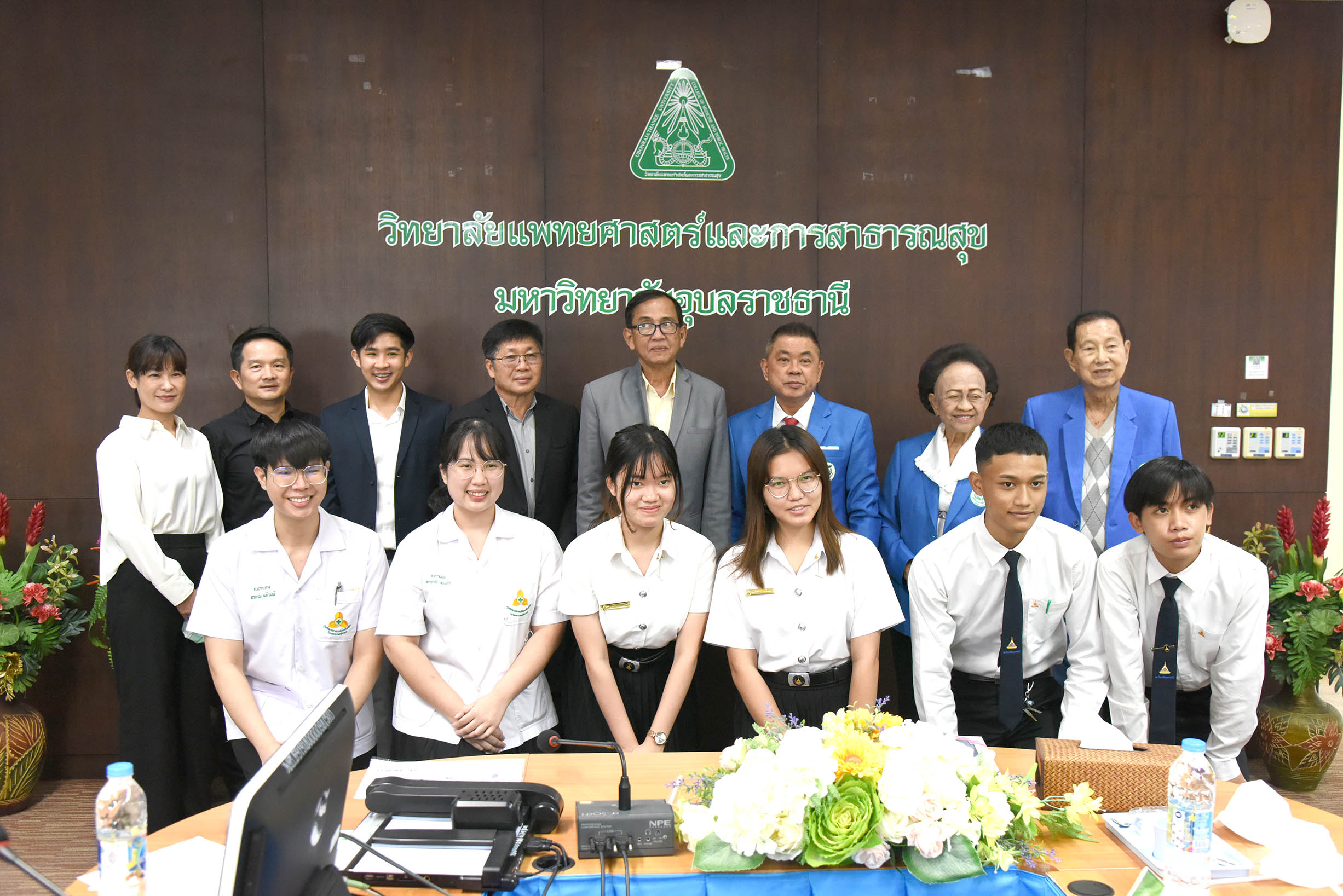 | มูลนิธิทุนแพทย์เพื่อปวงประชามอบทุนการศึกษา เป็นทุนต่อเนื่อง 6 ปี แก่นักศึกษาแพทย์ วิทยาลัยแพทยศาสตร์และการสาธารณสุขมหาวิทยาลัยอุบลราชธานี วันที่ 28 พฤศจิกายน พ.ศ. 2565 ณ ห้องประชุม CMP 401 วิทยาลัยแพทยศาสตร์และการสาธารณสุขมหาวิทยาลัยอุบลราชธานี สามารถดาวน์โหลดภาพทั้งหมดได้ที่