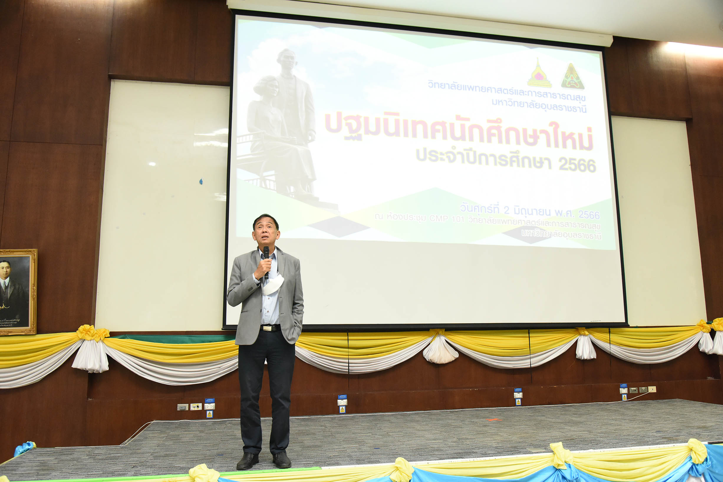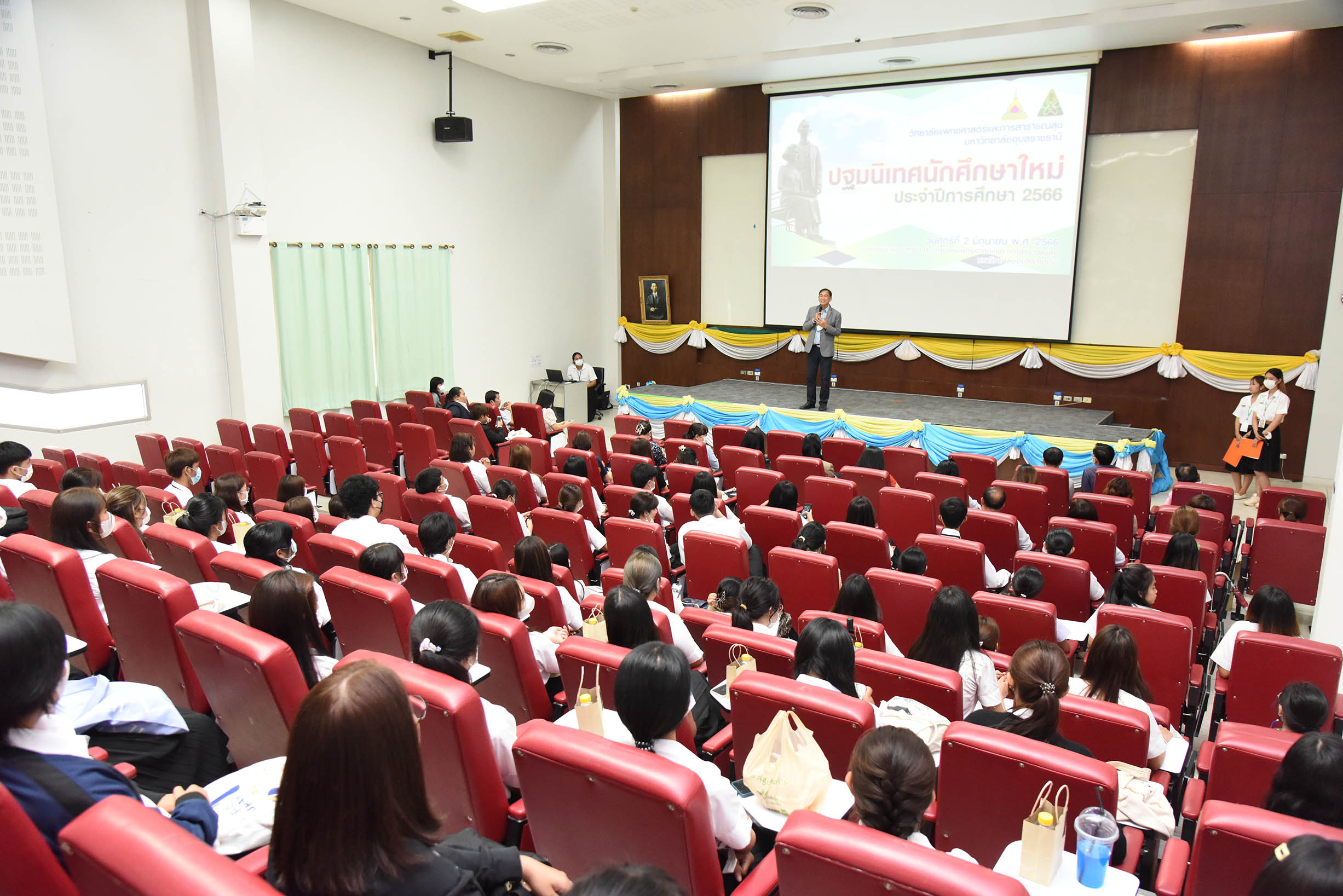 | ปฐมนิเทศนักศึกษาใหม่ ประจำปีการศึกษา 2566 วันที่ 2 มิถุนายน พ.ศ. 2566 ณ ห้องประชุม CMP 101 วิทยาลัยแพทยศาสตร์และการสาธารณสุข มหาวิทยาลัยอุบลราชธานี สามารถดาวน์โหลดภาพทั้งหมดได้ที่