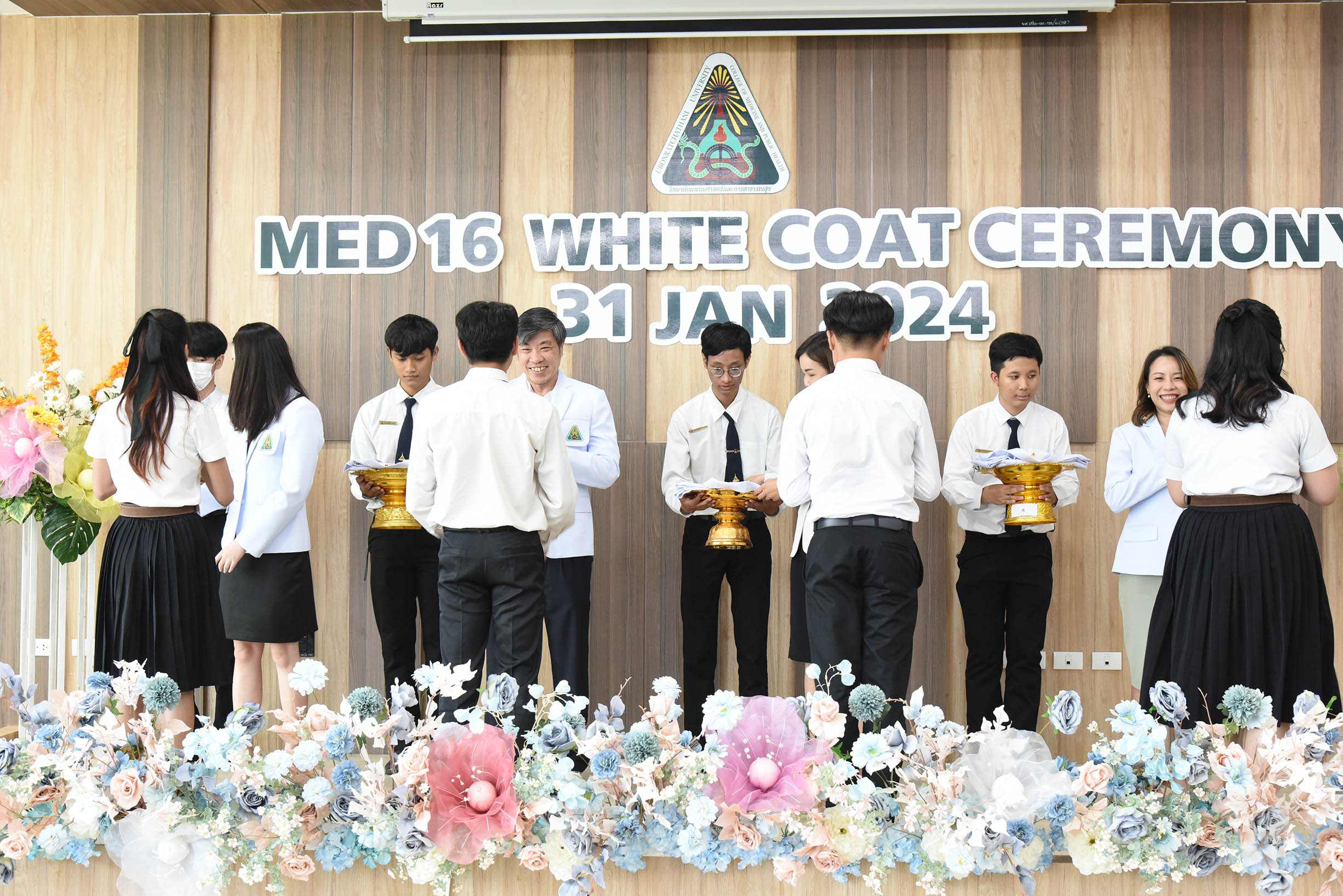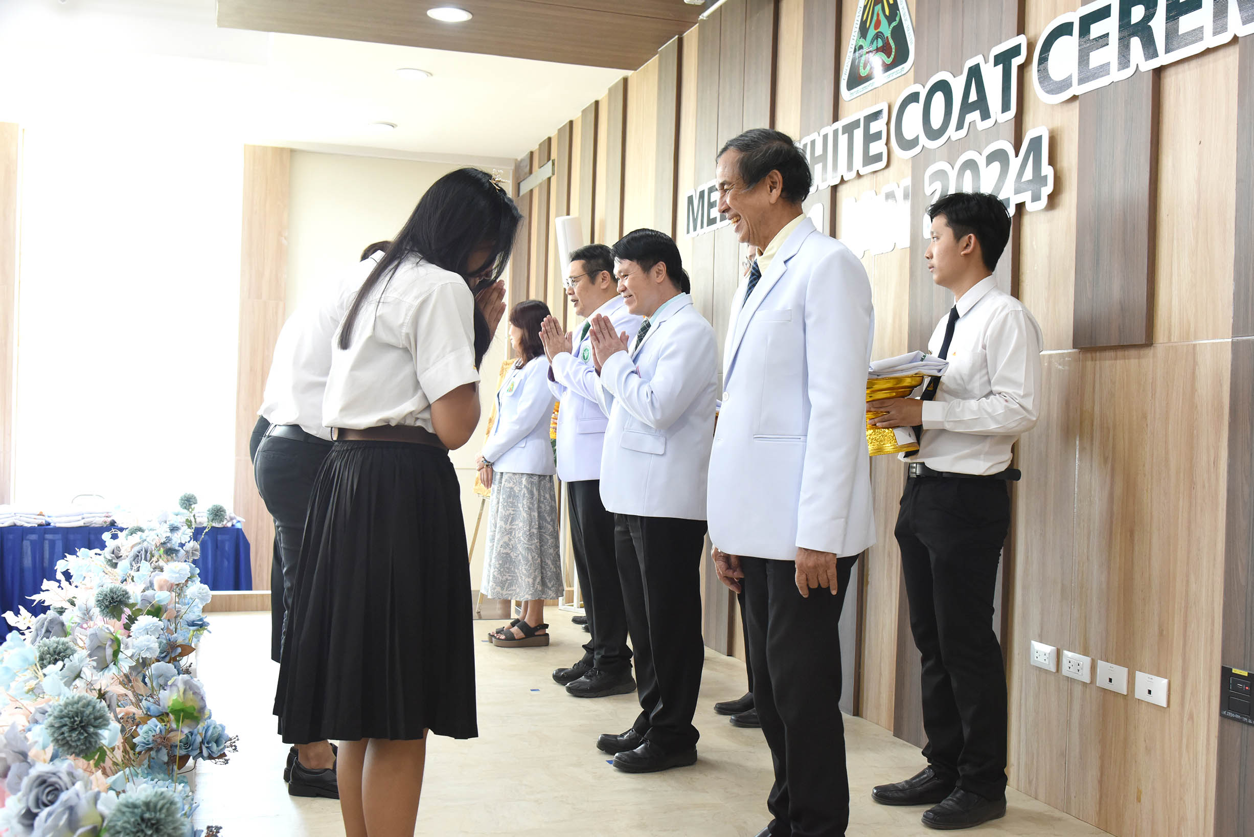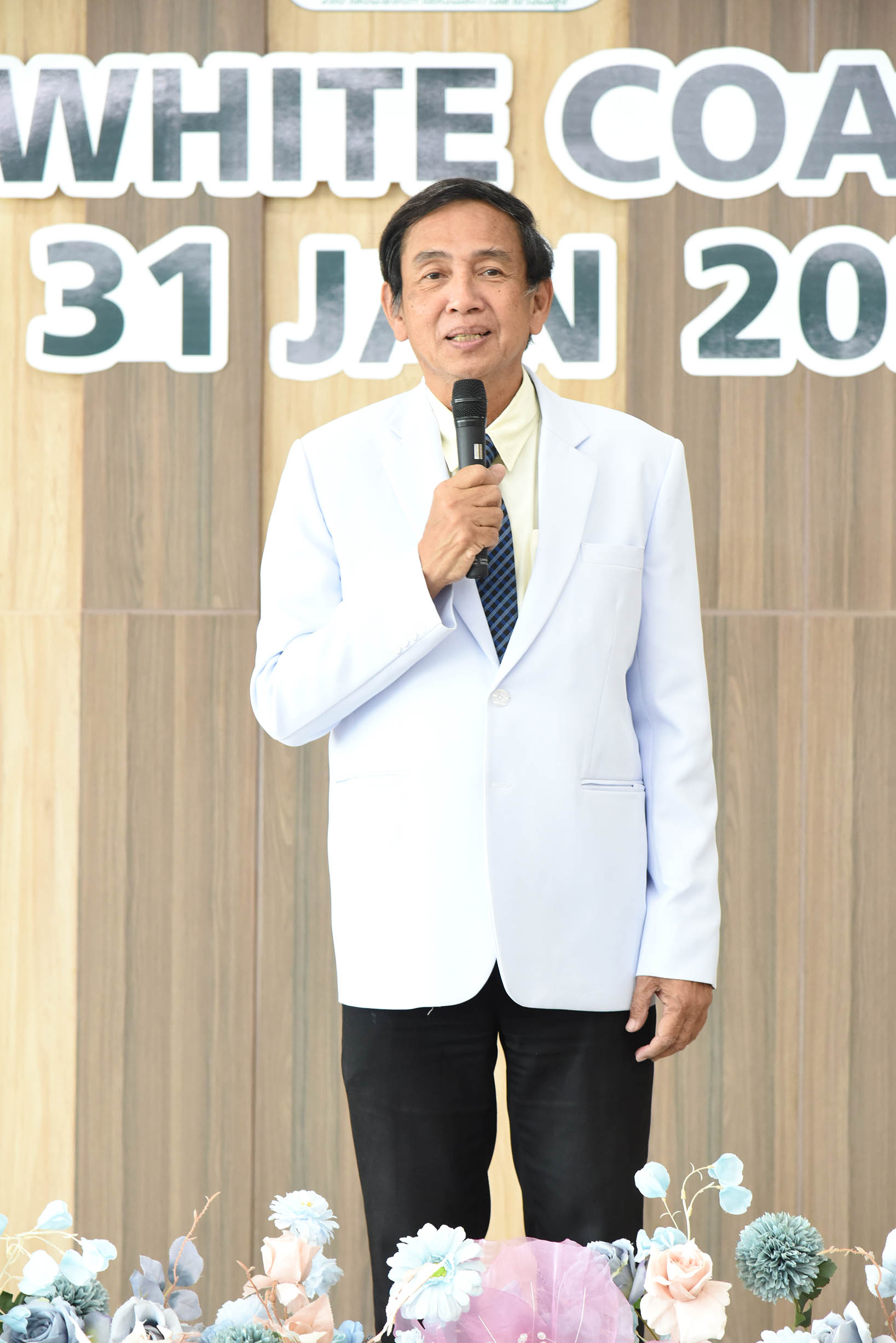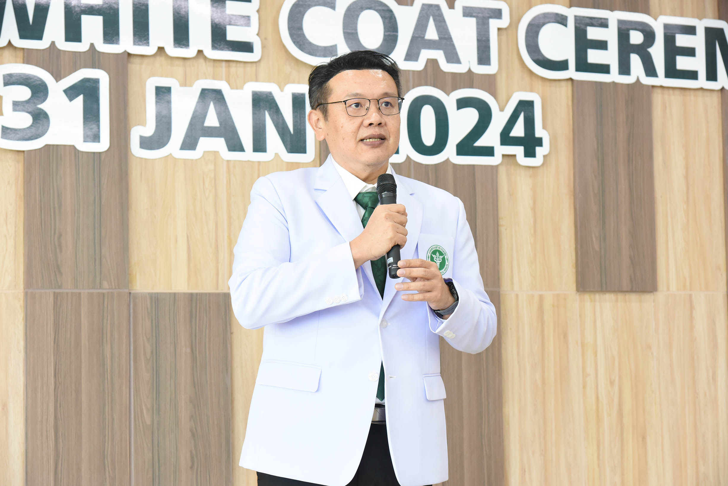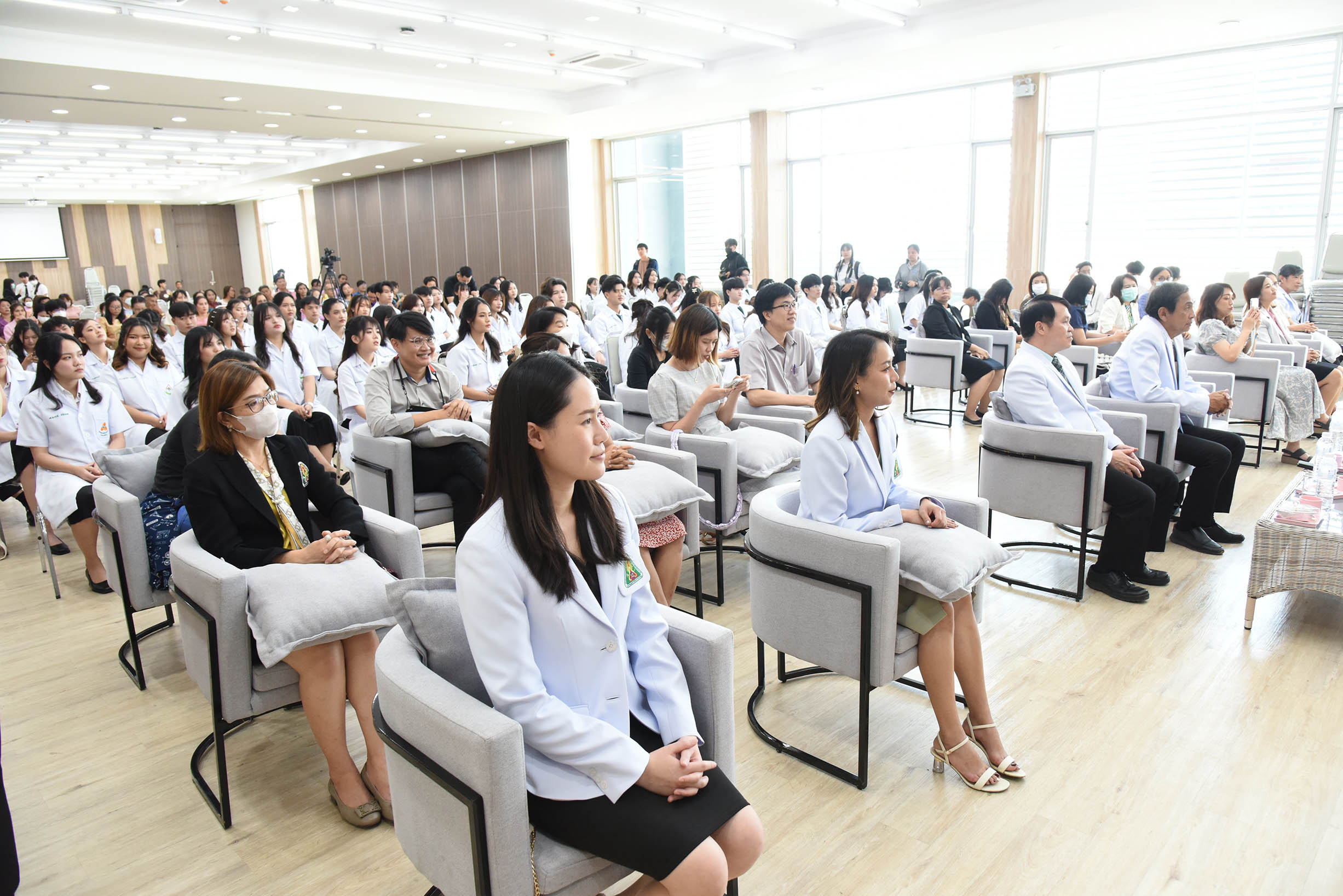 | งานปฐมนิเทศนักศึกษาแพทย์ก่อนขึ้นชั้นคลินิกและพิธีมอบเสื้อกาวน์ ประจำปีการศึกษา 2566 โดยได้รับเกียรติ จาก นพ.ประวิ อำ่พันธ์ คณบดีวิทยาลัยแพทยศาสตร์และการสาธารณสุข ผศ.(พิเศษ)นพ.มงคล ภัทรทิวานนท์ ผอ.ศูนย์แพทยศาสตรศึกษาขั้นคลินก โรงพยาบาลศรีสะเกษ และ นพ.ศิริสมบุญ ตอวิวัฒน์ ผอ.ศูนย์แพทยศาสตรศึกษาขั้นคลินก โรงพยาบาลสรรพสิทธิประสงค์ และคณาจารย์ มอบเสื้อกาวน์ให้แก่นักศึกษาแพทย์ ชั้นปีที่ 3 ในครั้งนี้