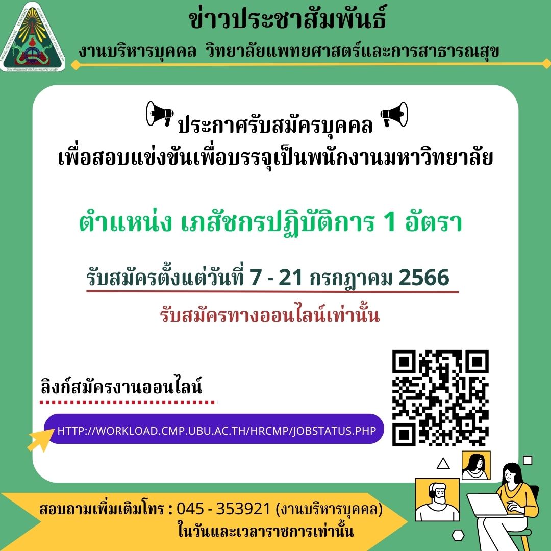 ลิงก์รับสมัครงานออนไลน์ : http://workload.cmp.ubu.ac.th/HRCMP/jobstatus.php