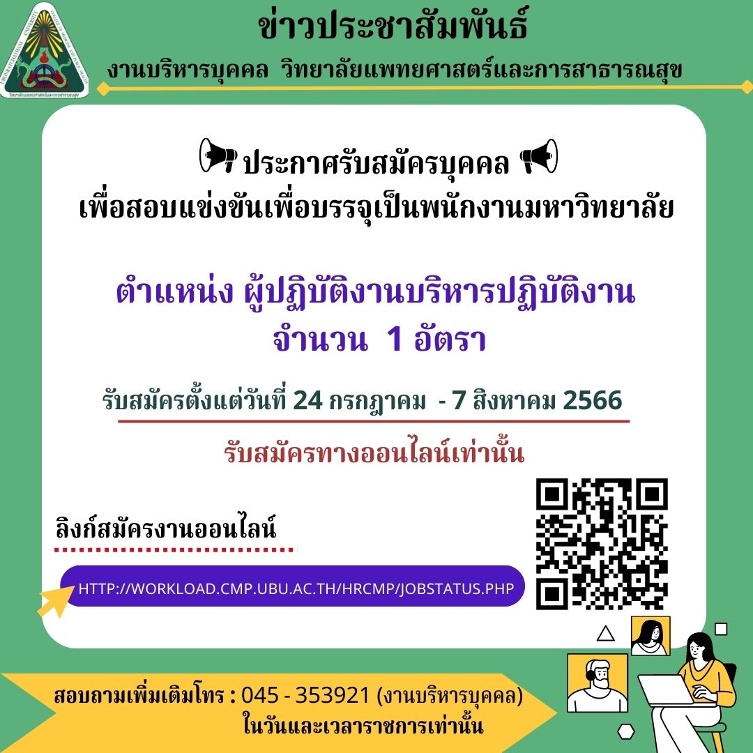 ลิงก์สมัครงานออนไลน์ : http://workload.cmp.ubu.ac.th/HRCMP/jobstatus.php